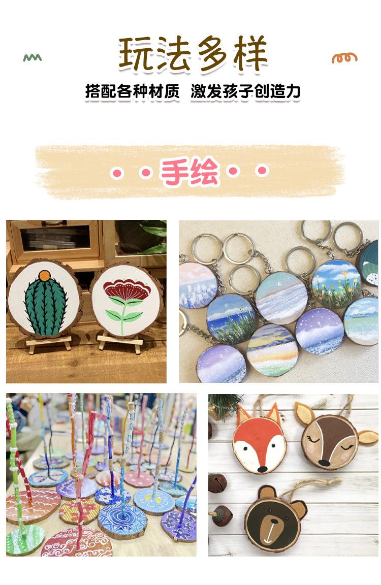 Piezas de madera originales, piezas de madera redondas, anillos anuales decorativos, piezas de madera pequeñas, piezas de madera para jardín de infantes, piezas de madera redondas pintadas a mano, material de bricolaje hecho a mano