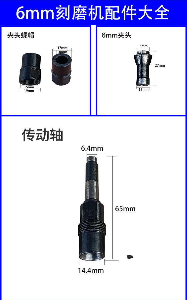 9423 accessories (6mm chuck), 9423 accessories (3mm chuck), 9423 accessories (clip cap), 9423 accessories (fro...