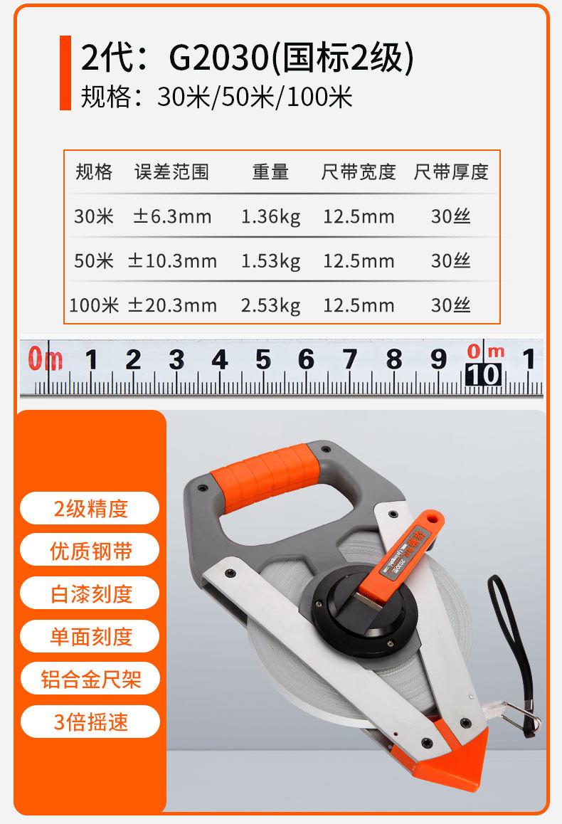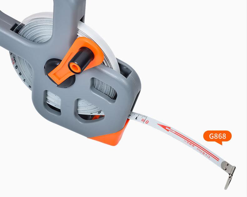 Cinta métrica de acero de 50 m resistente al agua y de precisión, de acero inoxidable de 100 m, revestida de plástico y resistente al desgaste.