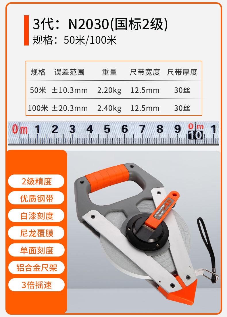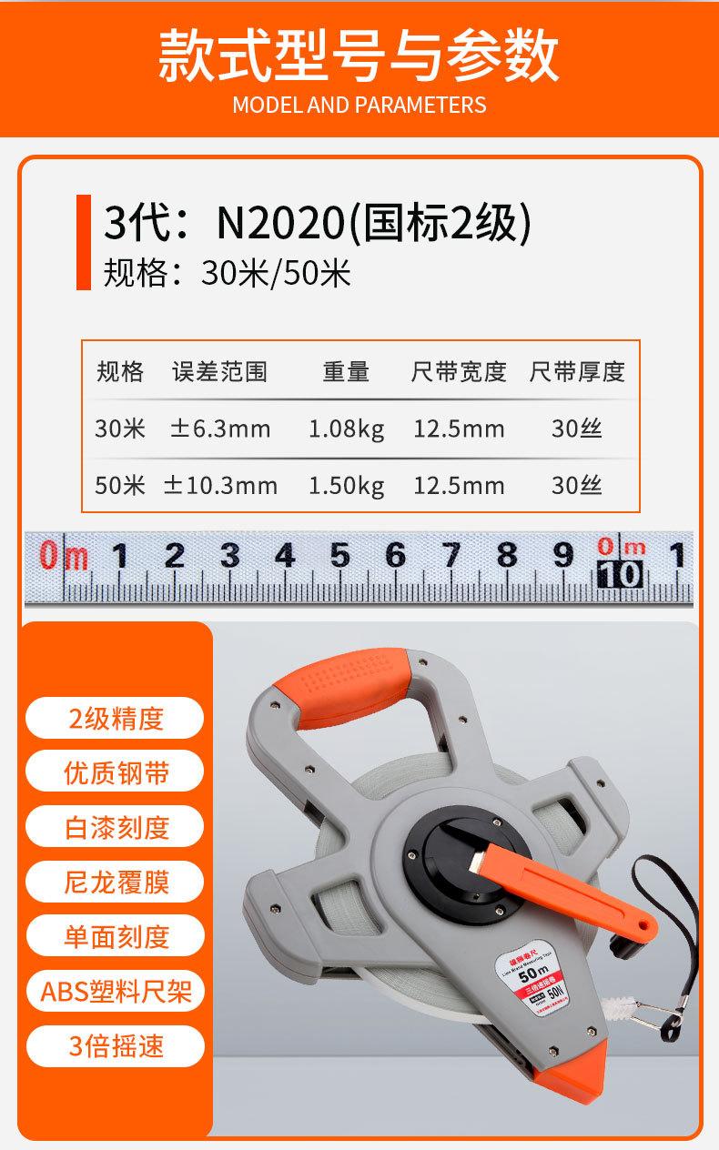 Level 2 precision nylon coated steel ruler (abrasion resistant does not rust) n2020- 50m
