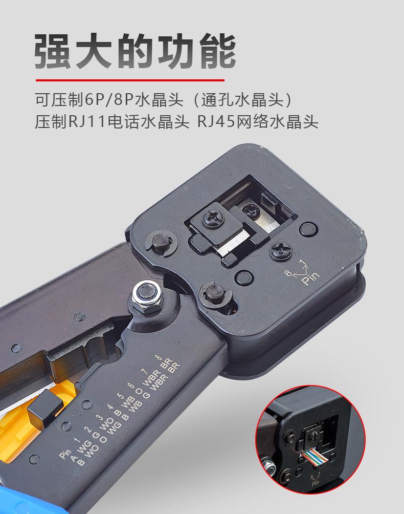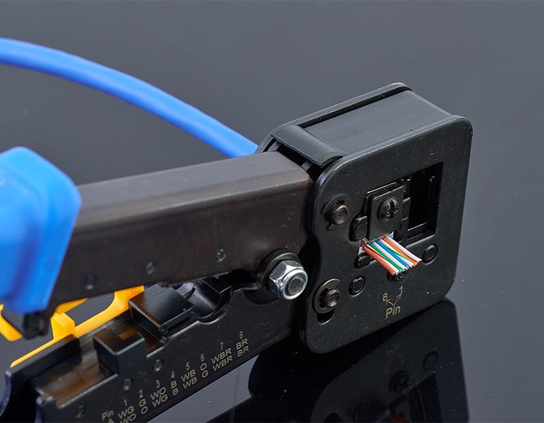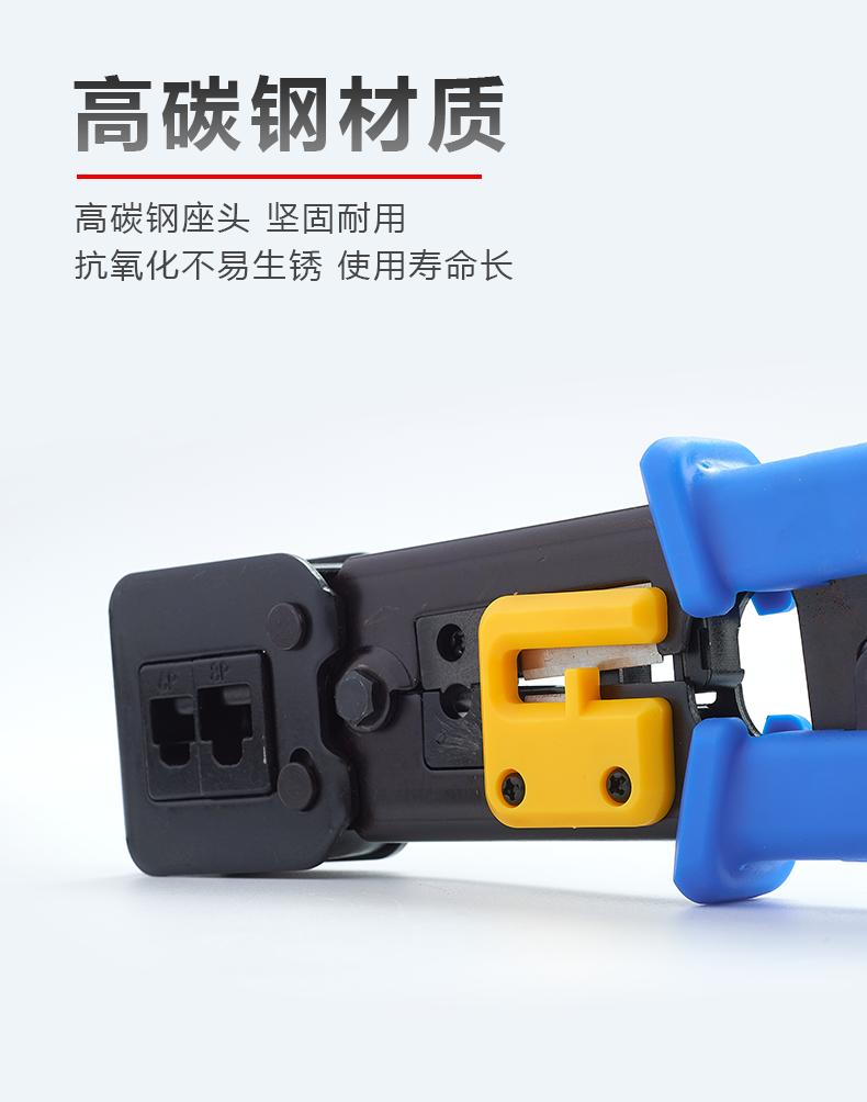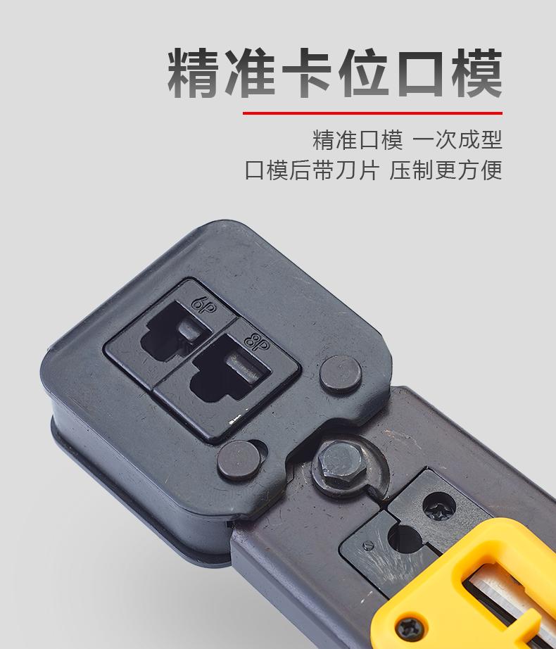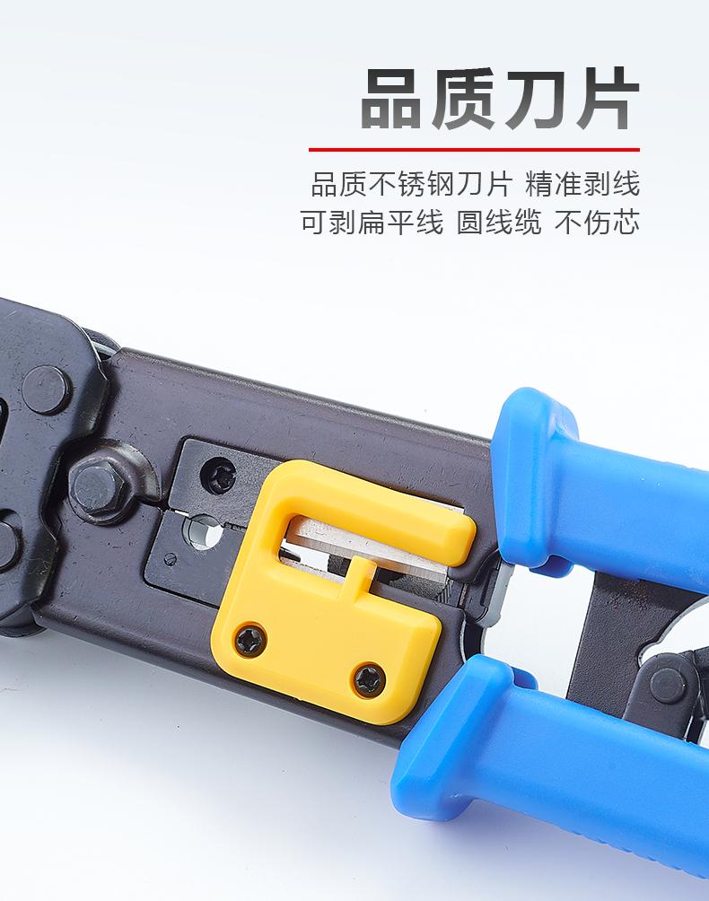 Alicates para cables de red con orificio pasante, alicates de crimpeado con cabeza de cristal perforada, alicates para cables de red EZ multicinéticos, alicates de doble propósito para cables de red 6P 8P: 1. Características del producto: ? 1. Se pueden utilizar tapones de cristal tanto pasantes como regulares. ? 2. Utilizar materias primas importadas respetuosas con el medio ambiente para cumplir con los estándares ambientales. ? 3. Cuchillas de alta calidad, borde afilado, fácil de cortar y uso duradero. ? 4. El uso de un molde de prensado de alta precisión no solo hace que el engarce se vea hermoso, sino que también hace que los datos sean mejores y más estables. ? 5. Gracias a la tecnología de circlip, es duradero y no se desprende. Dura más de 10 veces más que los tornillos convencionales. ? 6. Mango especial antideslizante, plástico de alta calidad. ? 7. Acero para herramientas de alta calidad.