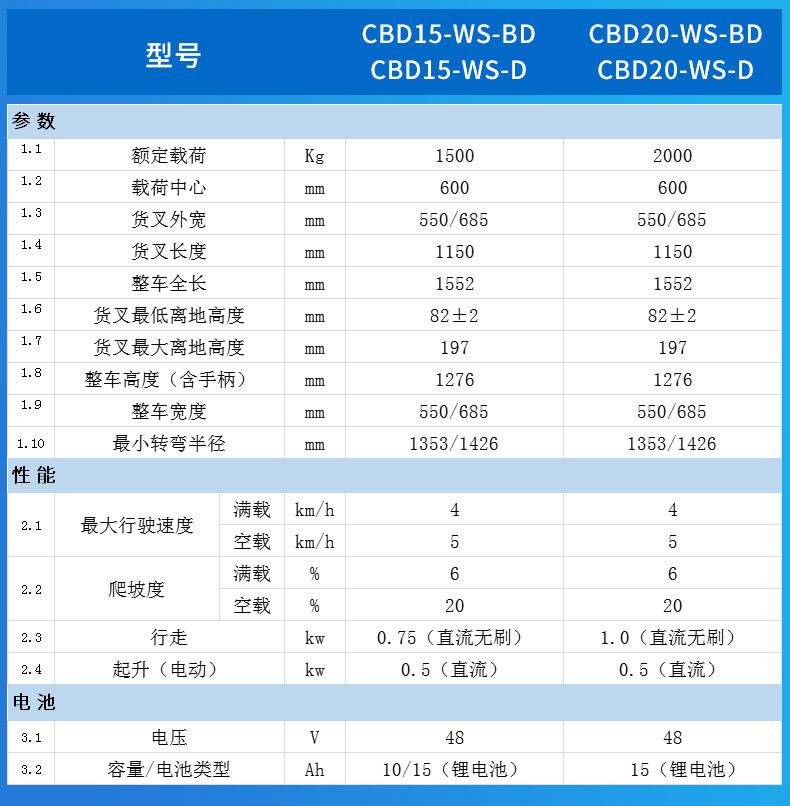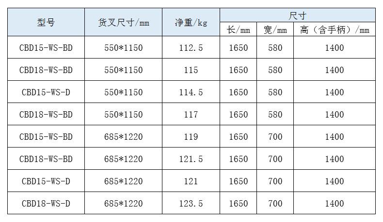 Electric 1.5 tons narrow 550MM, Electric 1.5 tons wide 685MM, Electric 2 tons narrow 550MM, Electric 2 tons wide 685MM