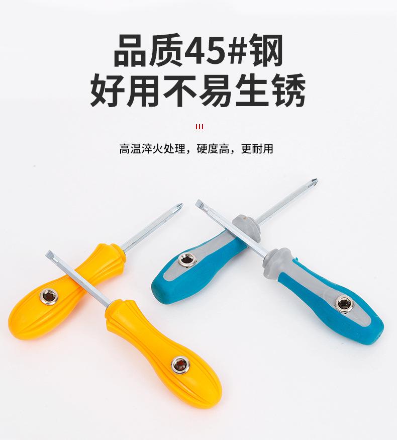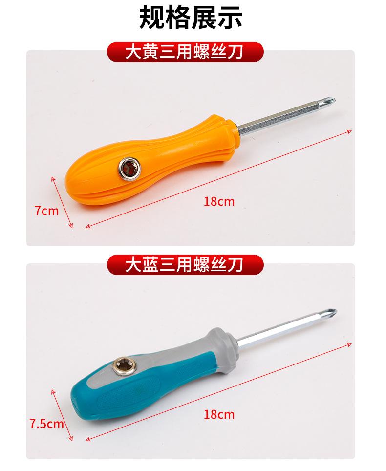 Destornillador Tres Usos con Mango Amarillo y Mango Azul, Cabezales Intercambiables, Cabeza Plana y Cabeza Phillips, Tienda de Dos Yuanos, Departamento de Ferretería, Alta Dureza
