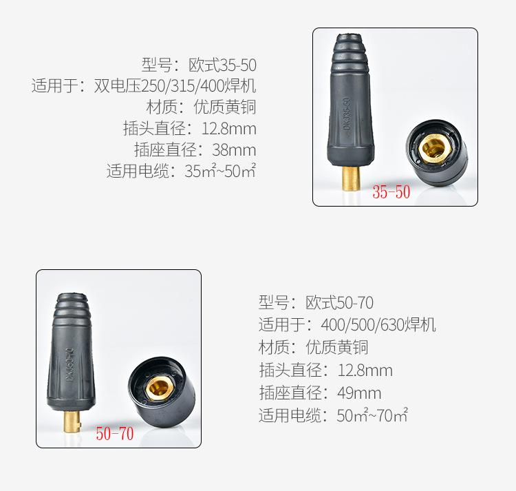 Máquina de soldar eléctrica de cobre puro DKJ10-25, cable de soldadura, conector de enchufe rápido macho y hembra, enchufe rápido europeo, conjunto completo de accesorios