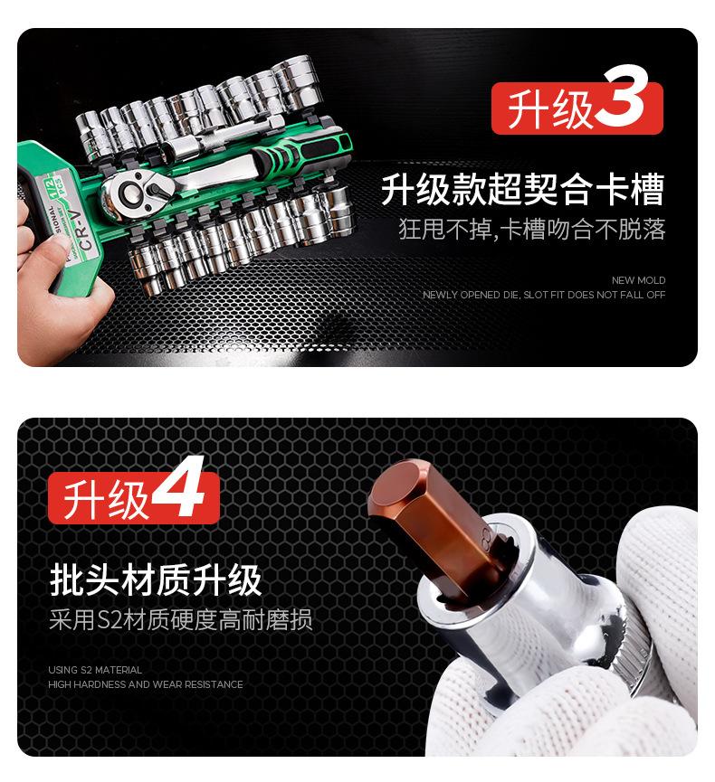 Juego de herramientas de llave de tubo de trinquete, combinación multifuncional, llave hexagonal externa de manga rápida, herramienta de reparación de automóviles
