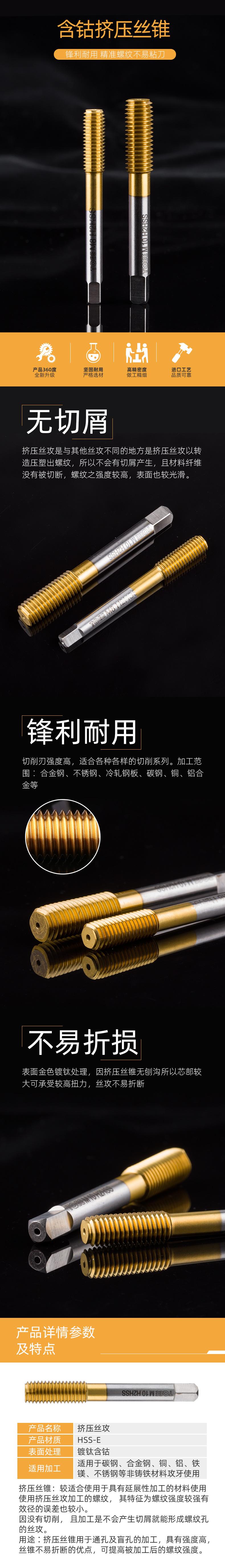 Macho de extrusión sin viruta de titanio con revestimiento de cobalto M2 M2.5 M3 M3.5 M4 M5 M6 M8 M10 M12
