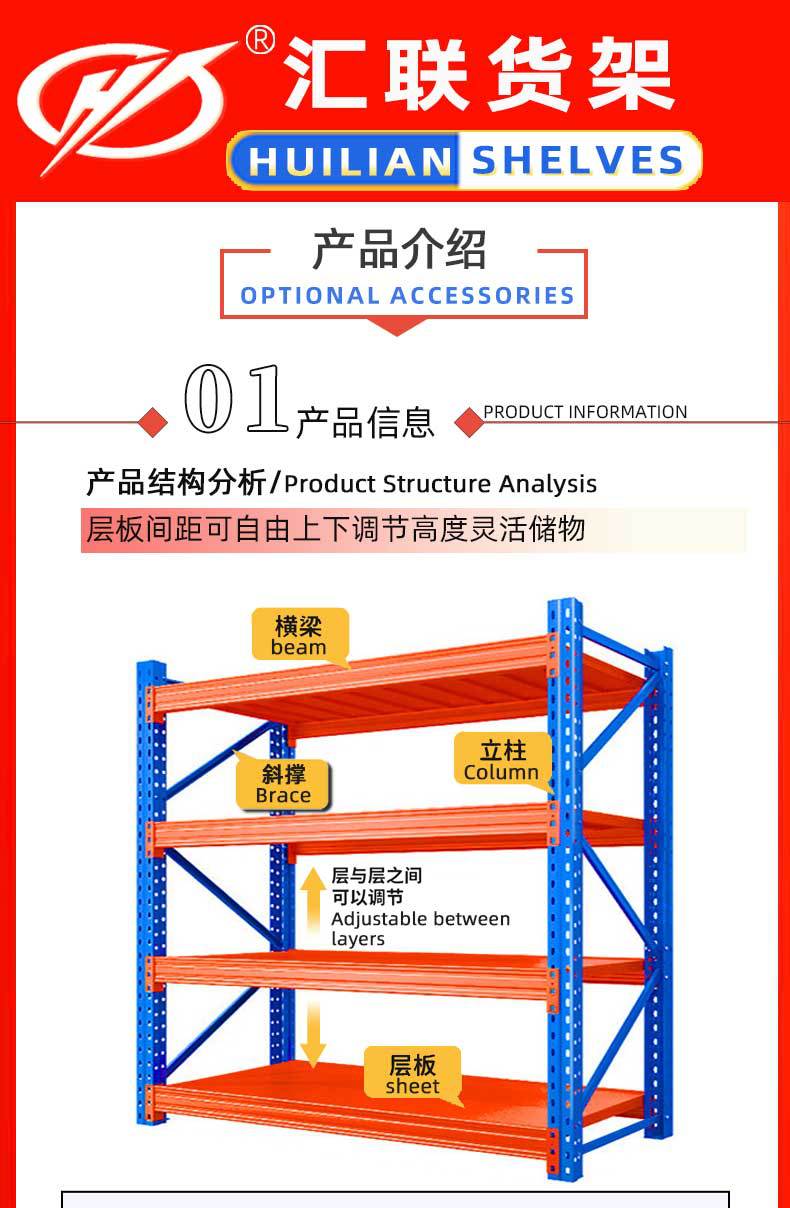 Estanterías Industriales de Viga Pesada para Almacén, Estanterías Multicapa para Logística Express, Estanterías para Almacén Guangzhou
