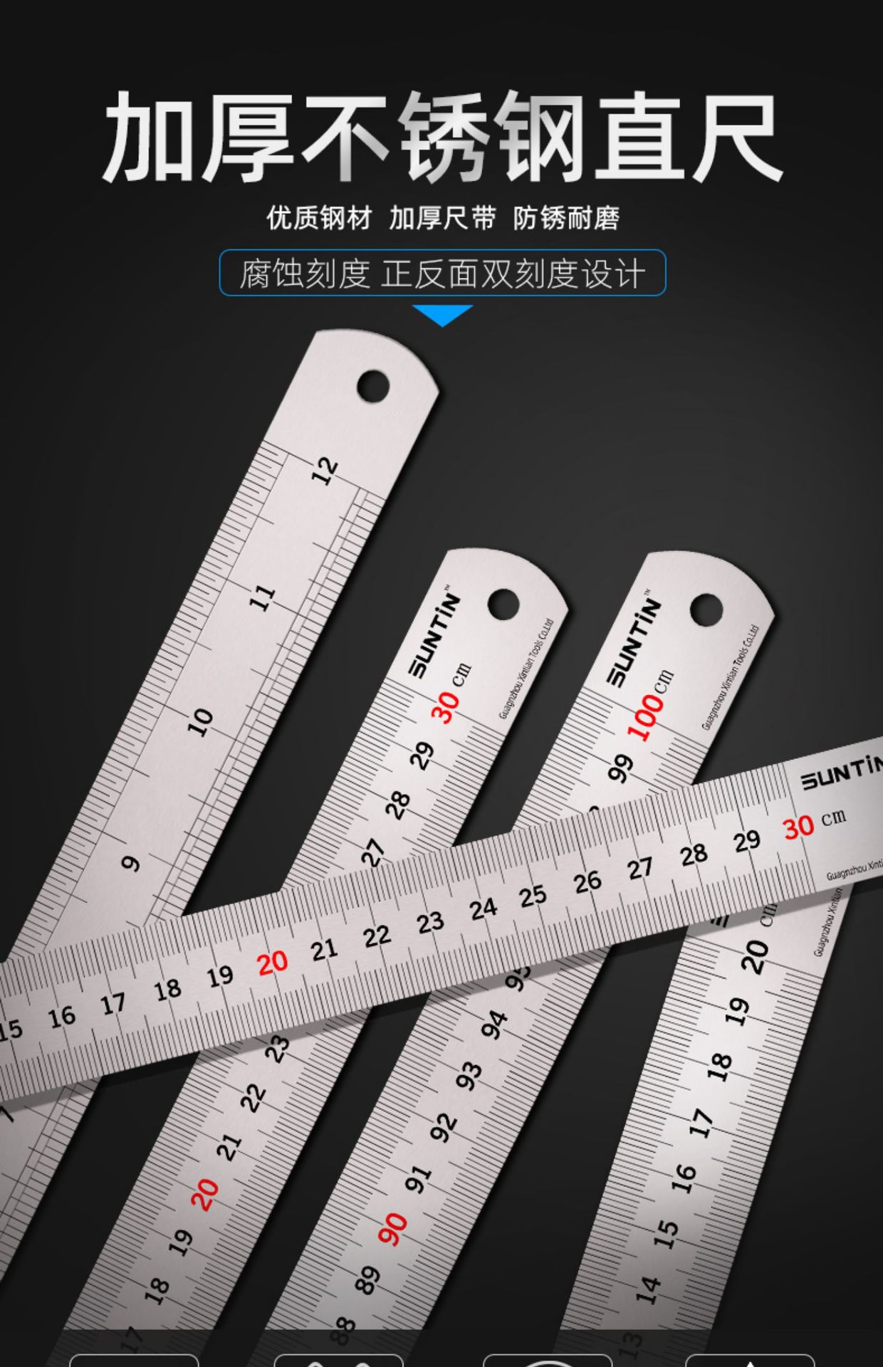 Regla de acero de 1 metro 5 regla dura engrosada de acero inoxidable regla de 30/50/cm regla de hierro regla de acero regla de acero
