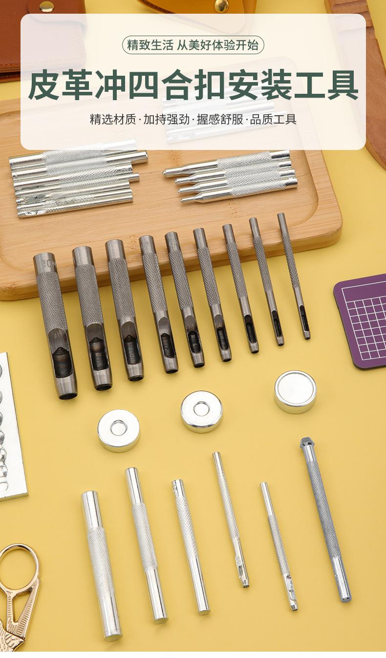 Herramienta de instalación de cuatro botones, base de punzón de remache, botón de presión de cuero para bricolaje, herramienta de instalación de botones de mezclilla de varios tamaños