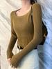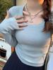 Tejido Fino Otoño e Invierno 2025 Nueva Ropa de Mujer Tops de Otoño con Cuello Cuadrado Capa Base Suéter Corto Ajustado