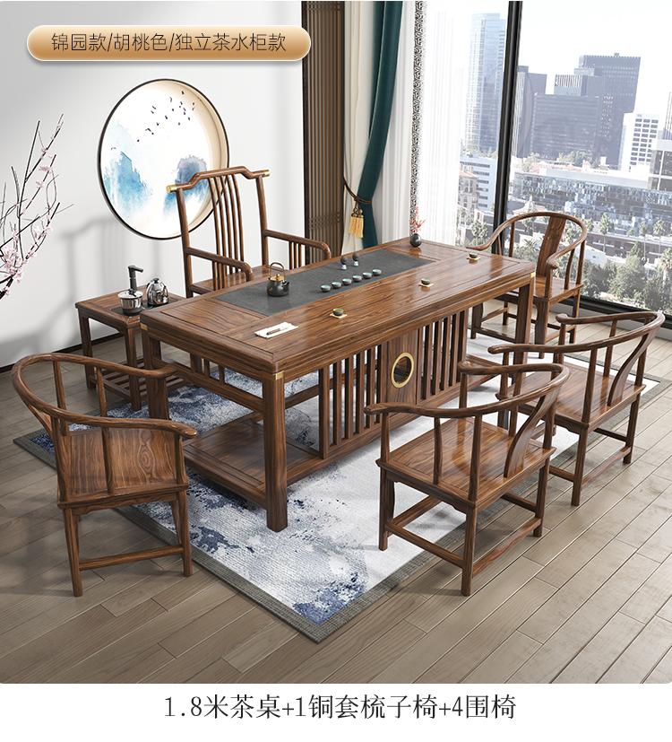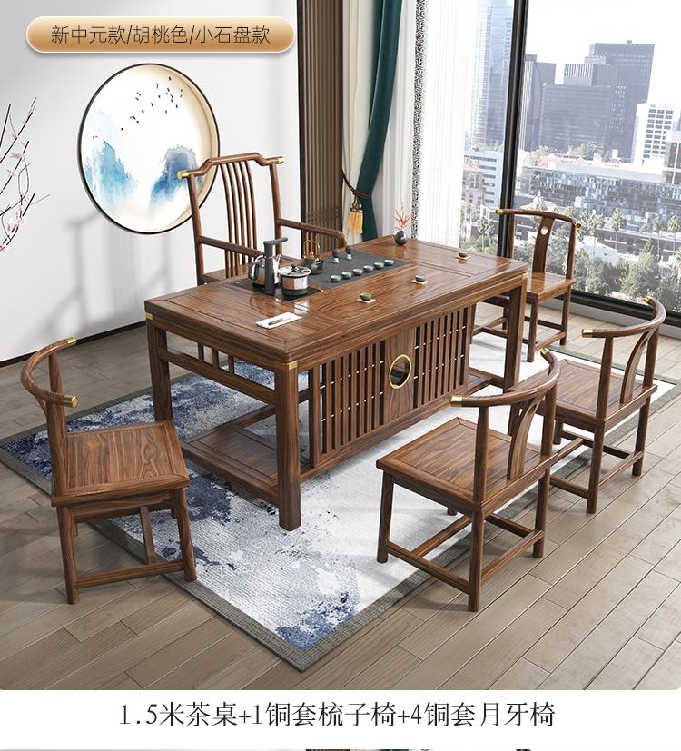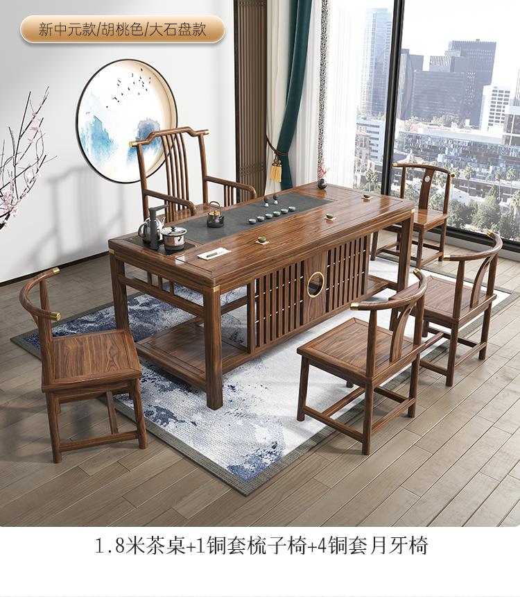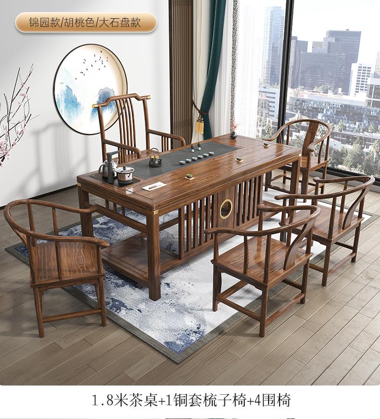 Nueva mesa de té y silla de madera maciza de estilo chino, combinación de mesa de té de recepción de oficina, juego de té, mesa de té integrada para el hogar