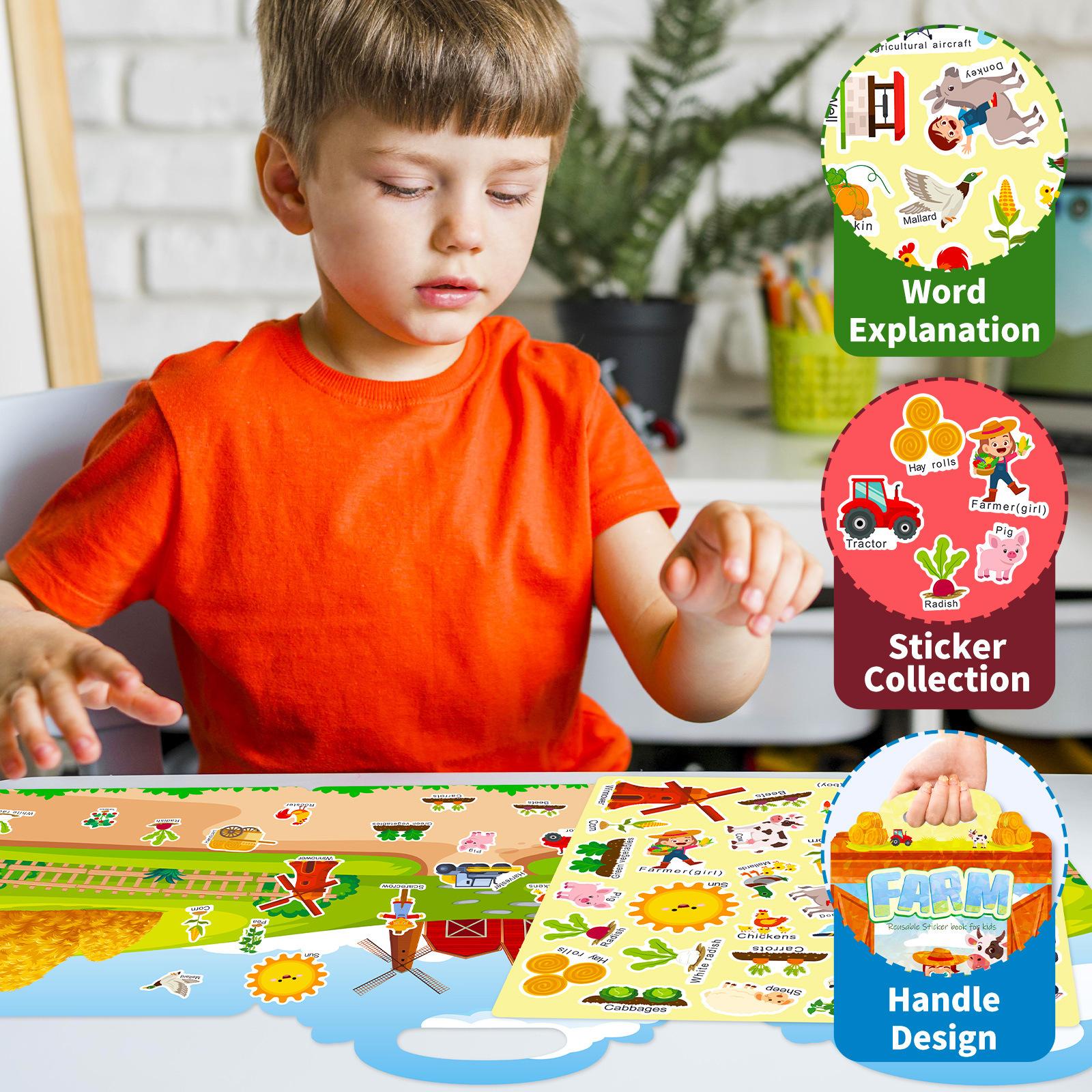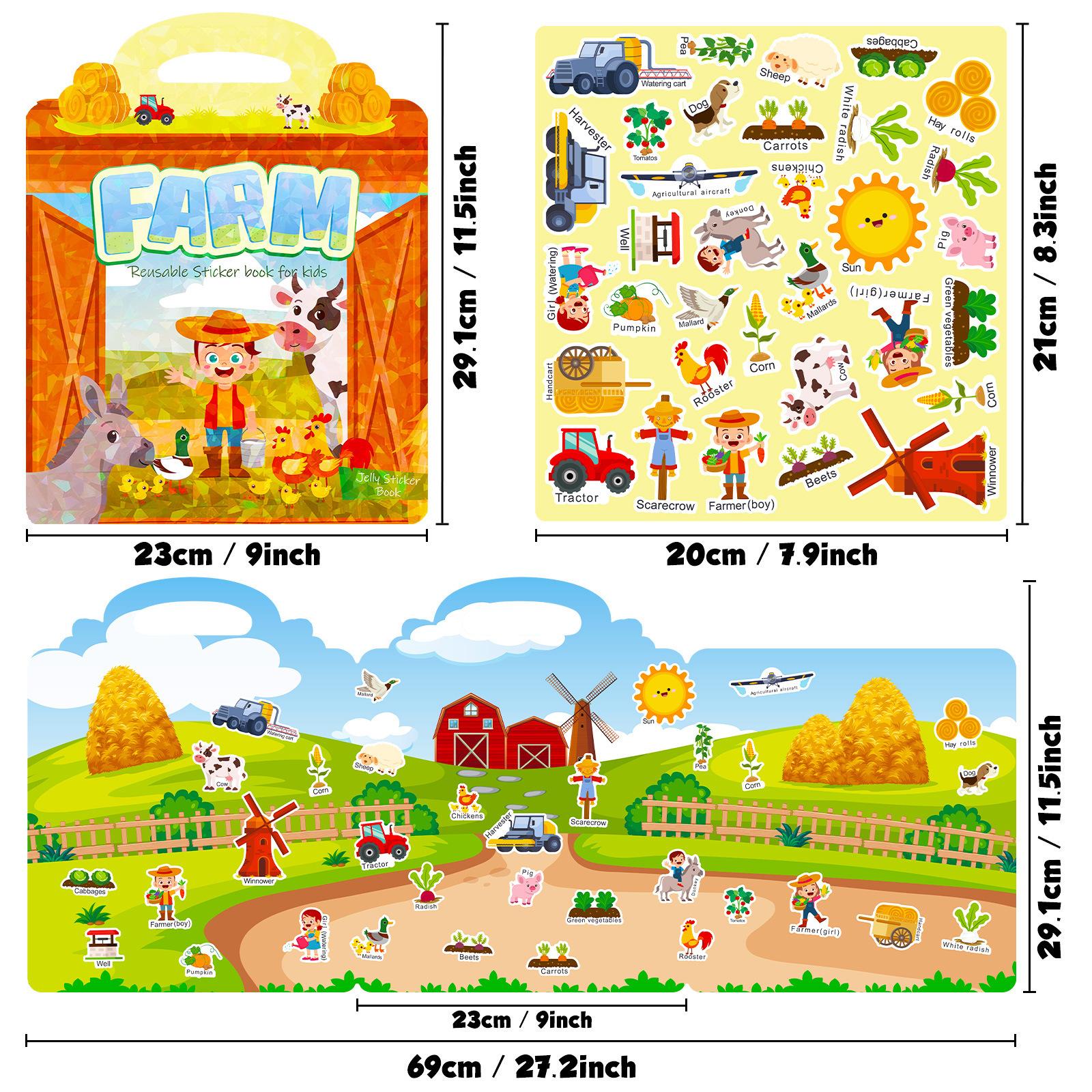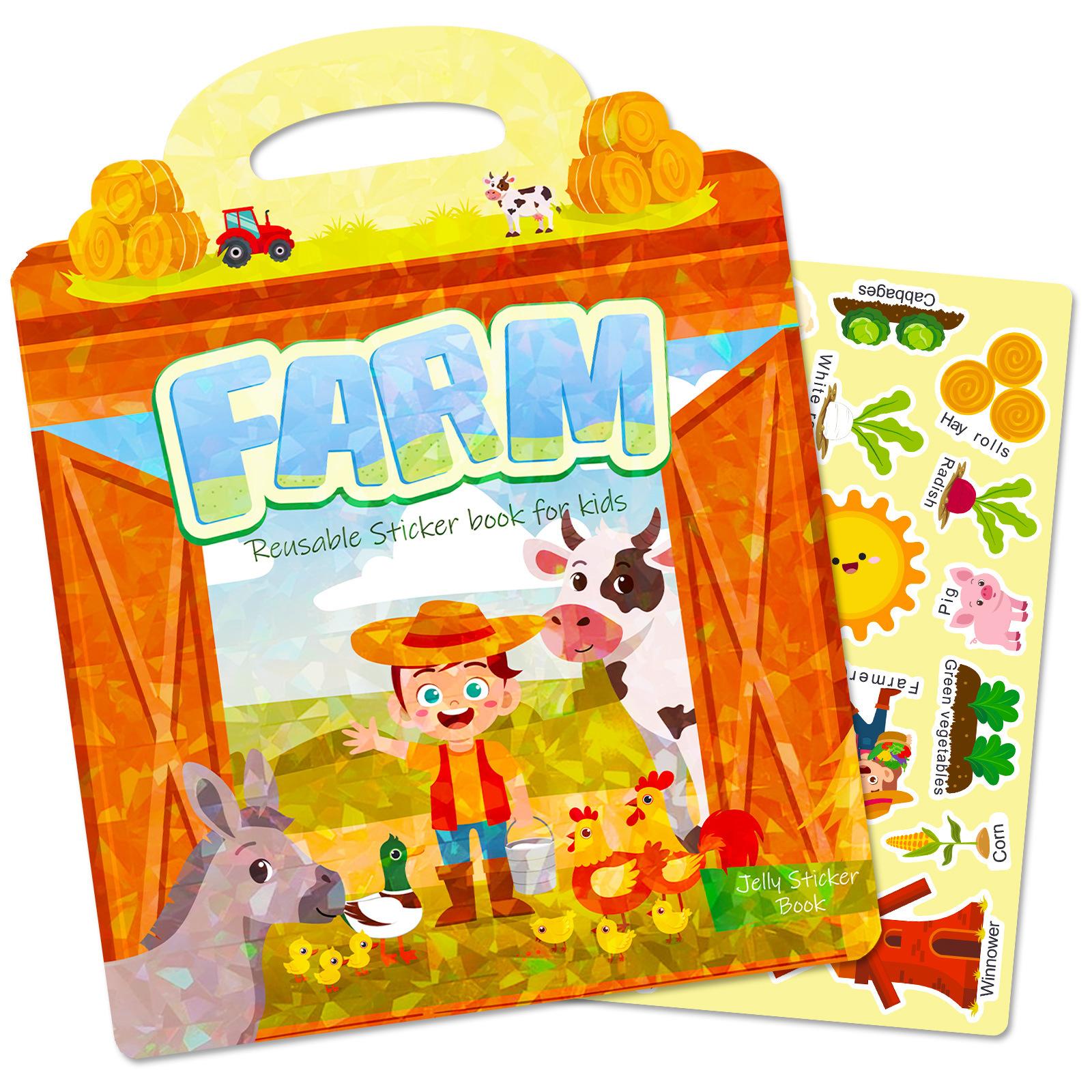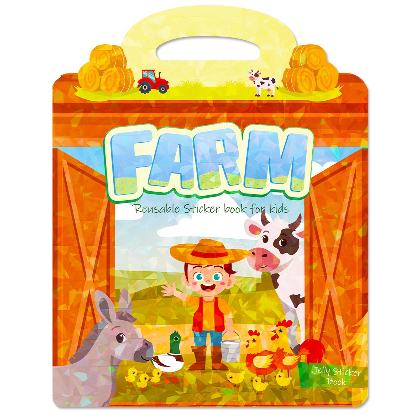 Libro de pegatinas de gelatina repetidas para niños, portátil, creativo, bricolaje, granja cognitiva, iluminación eólica, educación temprana, entrenamiento de inteligencia