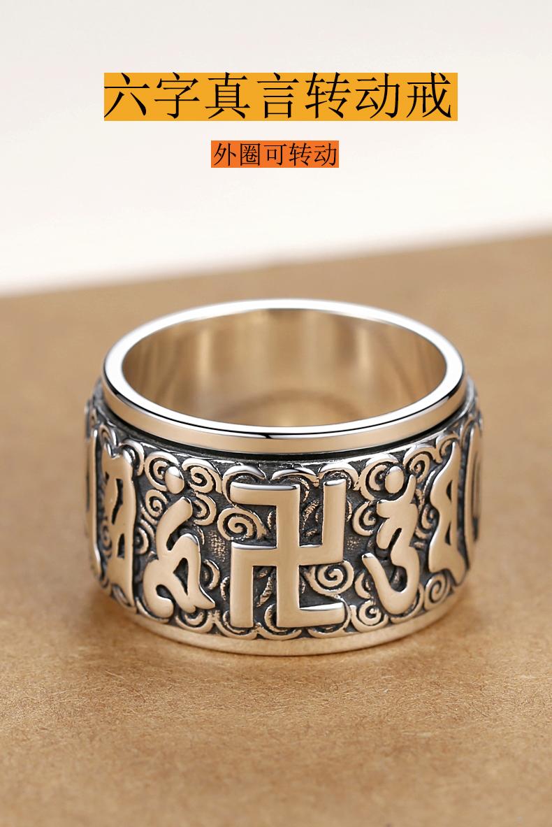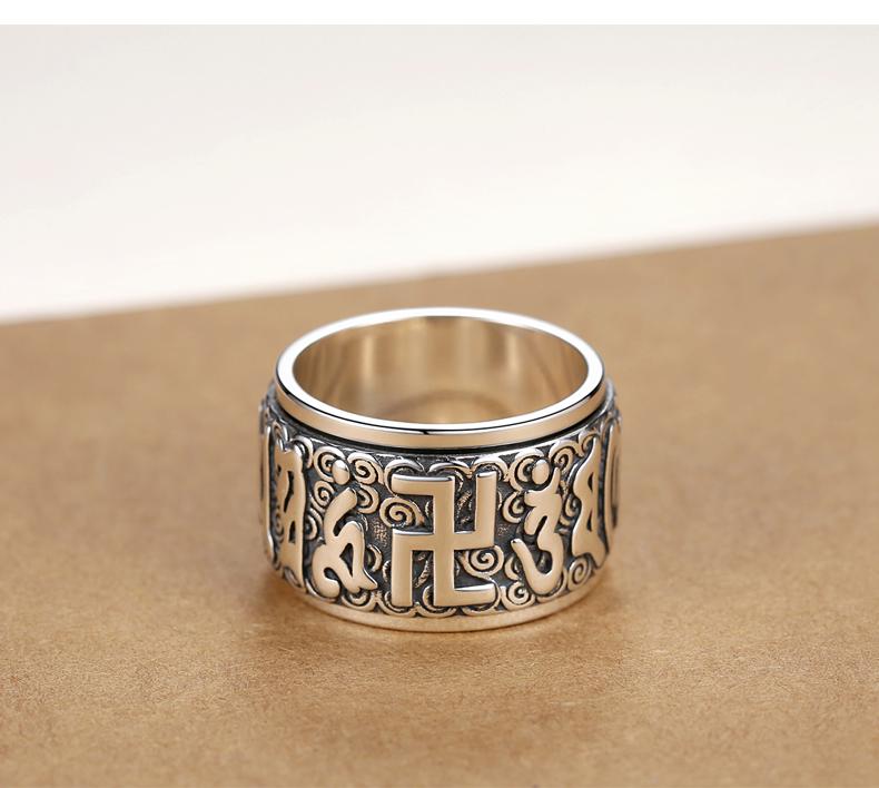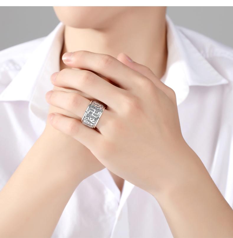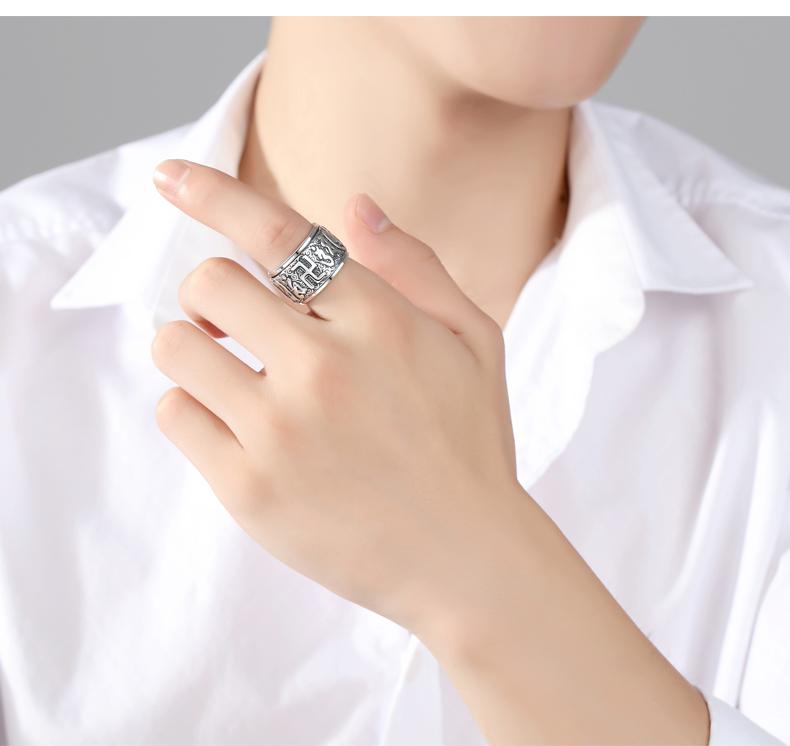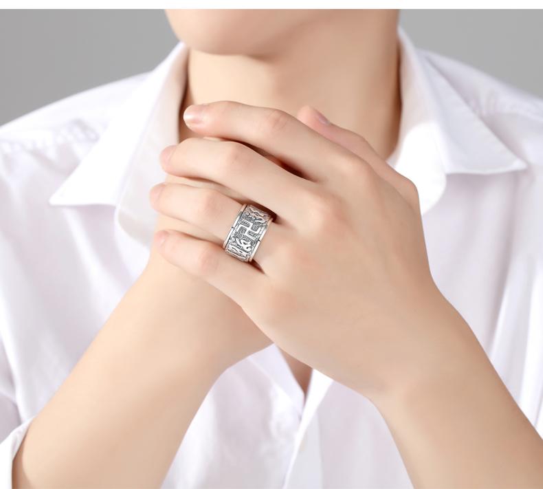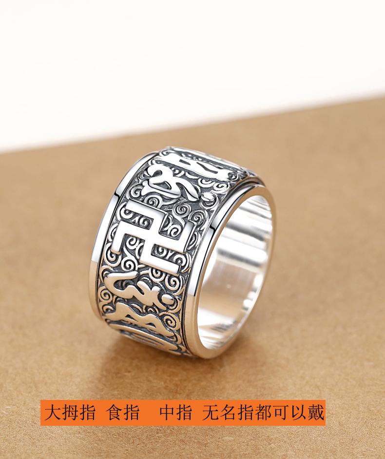 Compra Anillo para hombre de plata esterlina 925, moderno nicho, mantra de seis palabras giratorio, vintage plata tailandesa, talla grande, anillo ancho al por mayor en Joom.pro