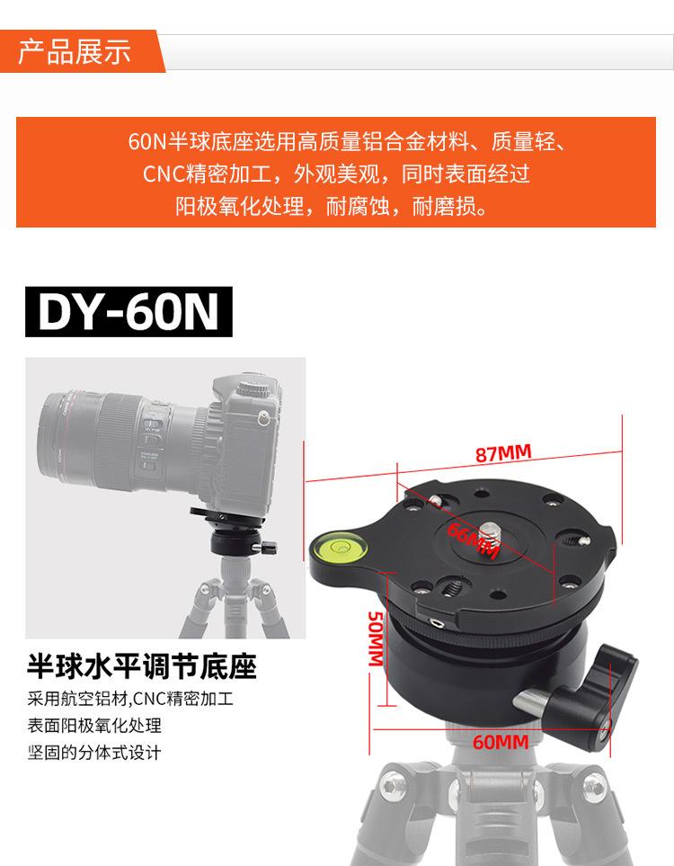 Mesa de ajuste Beizhen DY-60N, base hemisférica, trípode panorámico con giro e inclinación, asiento de ajuste horizontal universal para cámara SLR