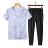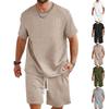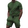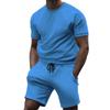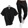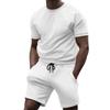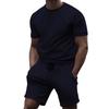 Traje deportivo de manga corta para hombre, novedad de verano, estilo europeo y americano, informal, de color sólido, con cuello redondo, camiseta y pantalones cortos, traje de dos piezas para hombre