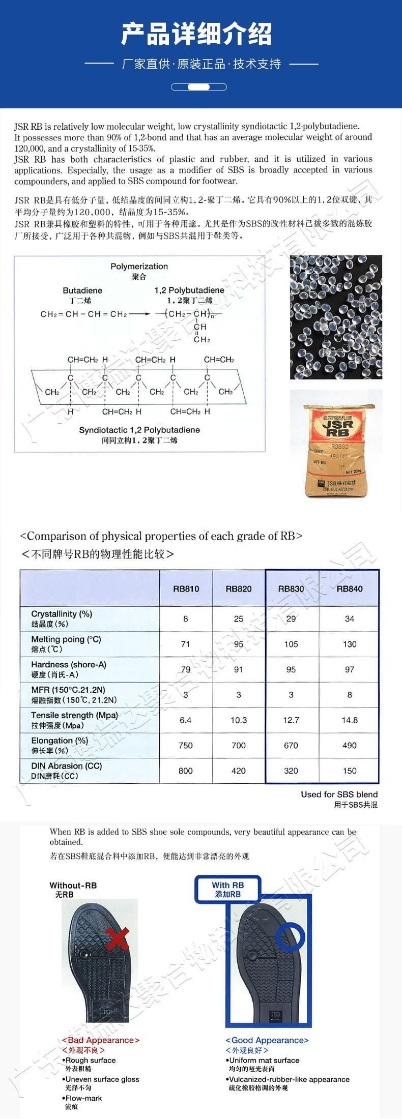 Japón Jsr Rb810 Caucho Plástico Sbs Material para Zapatos Modificador de Superficie Lisa Resistente al Desgaste Caucho Japonés Jsr Rb820
