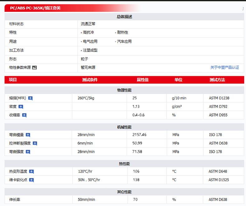 PC/ABS Zhenjiang Qimei PC-365K Grado de inyección Alta resistencia al impacto y al calor Plástico Electrodomésticos Piezas de automóvil Aleación