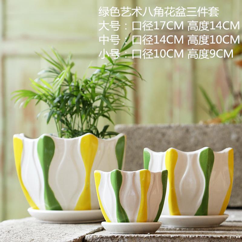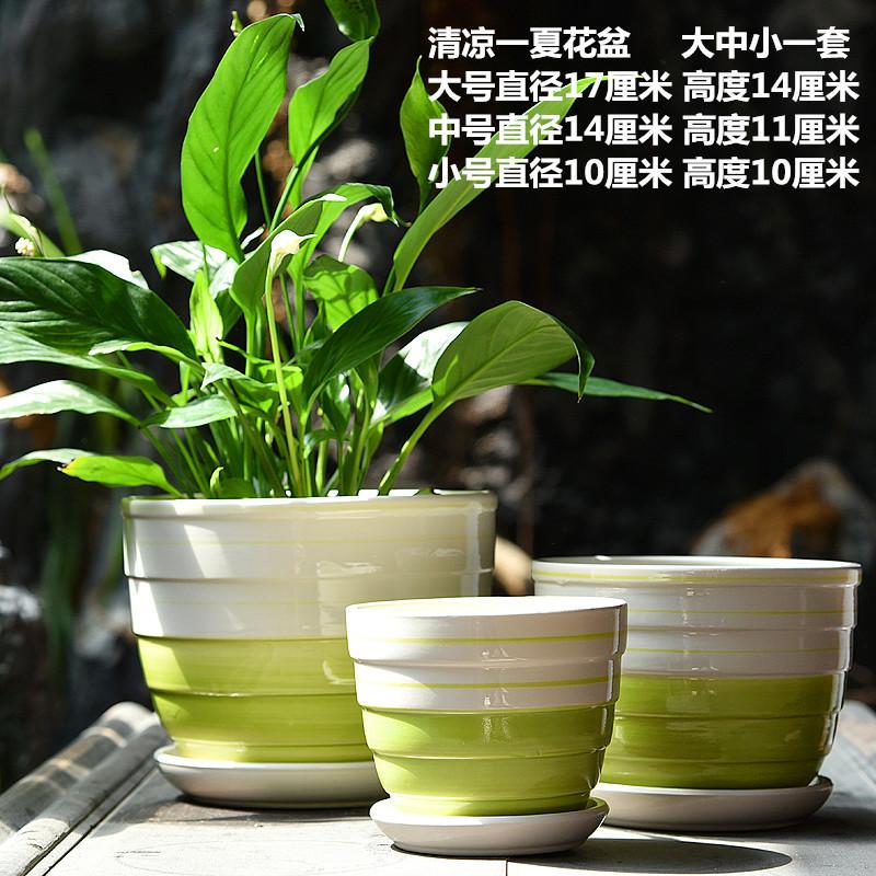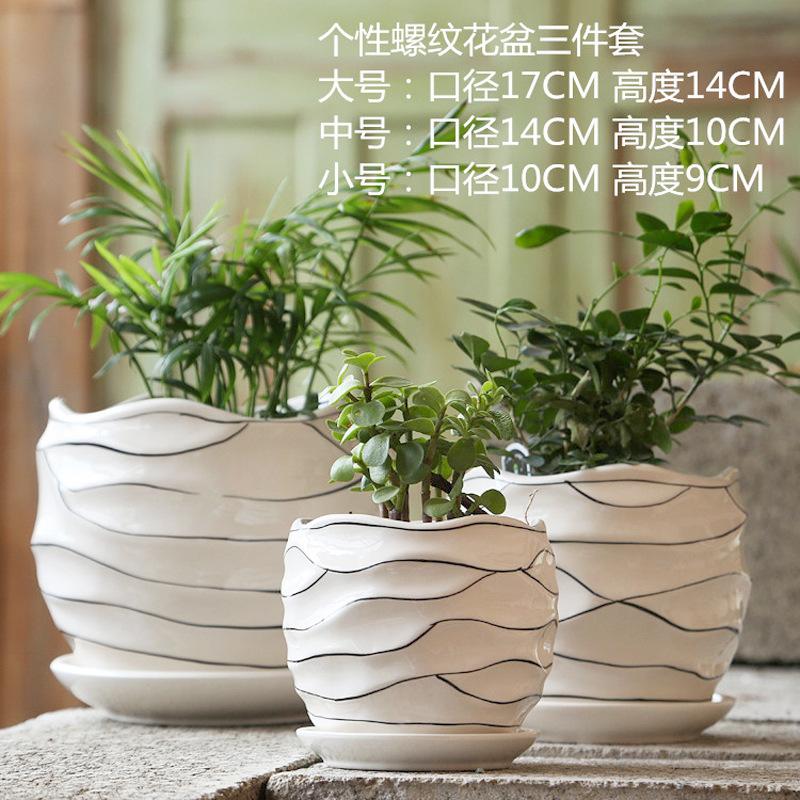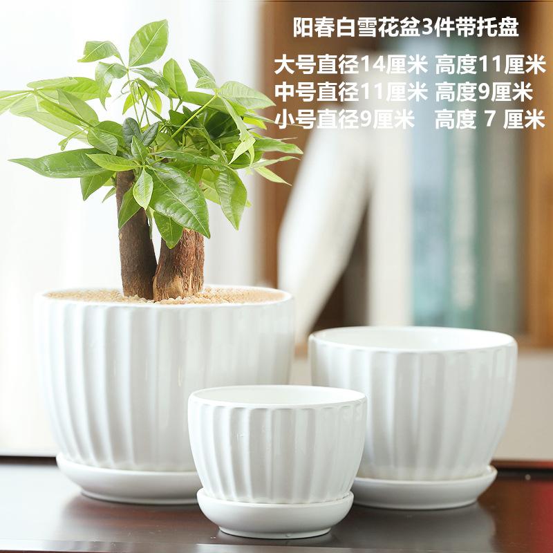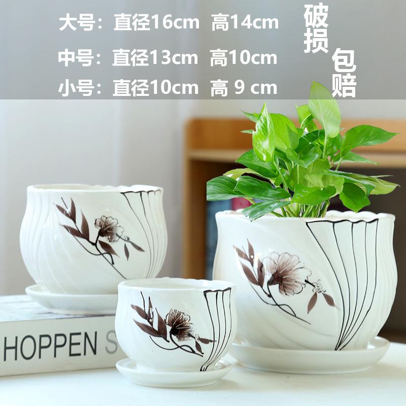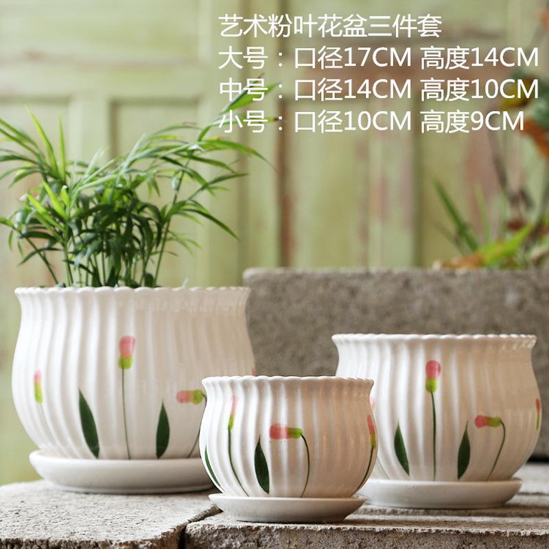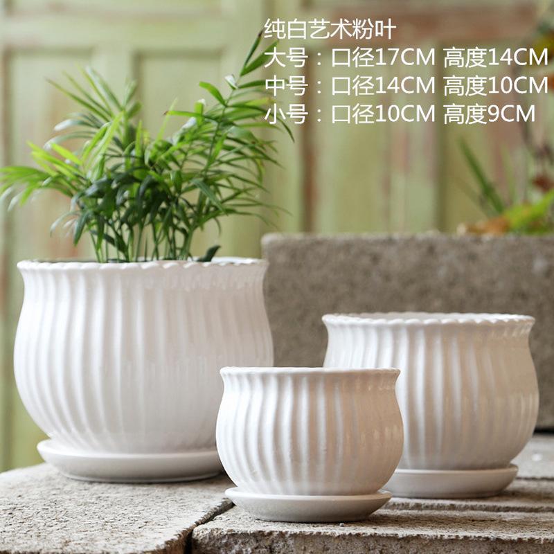 Maceta de cerámica grande, extra grande, con bandeja, sencilla, para el hogar, con diseño de plantas verdes, creativa y distintiva, con flores carnosas, envío gratis.