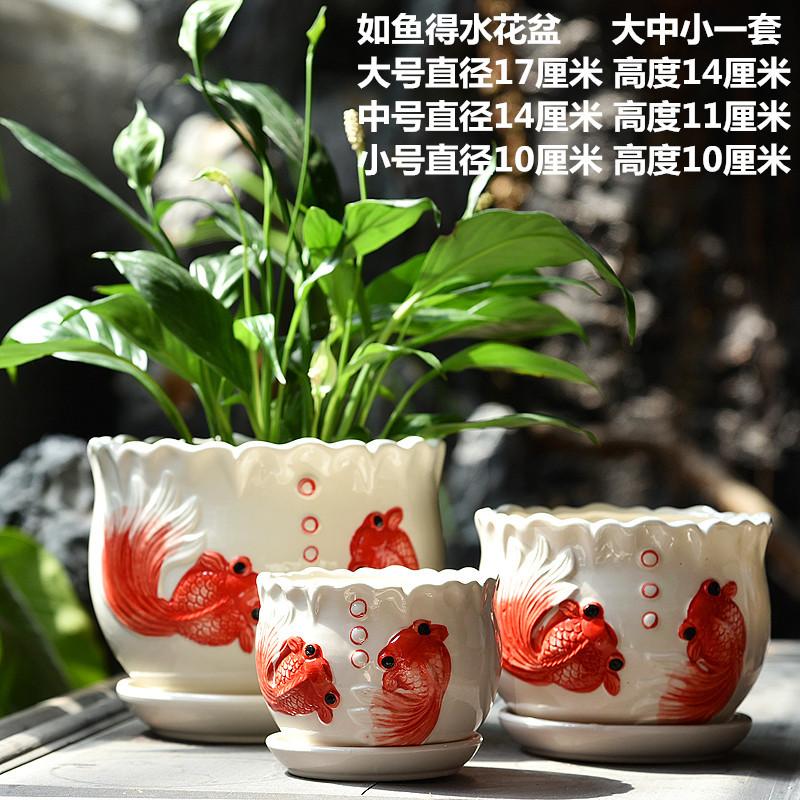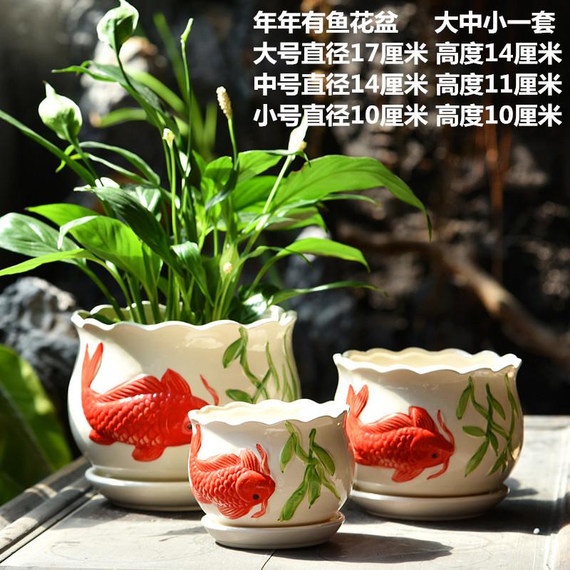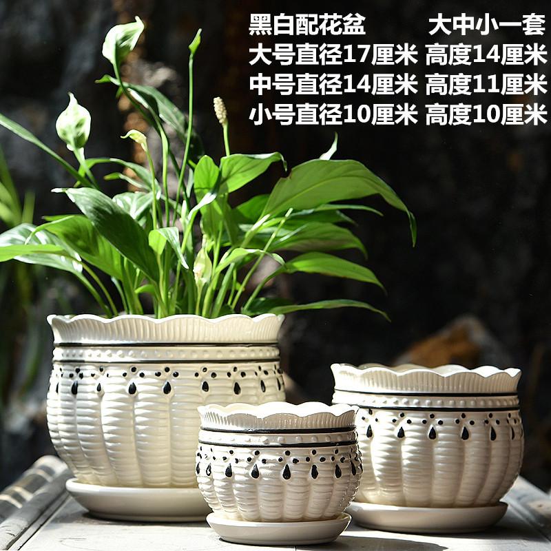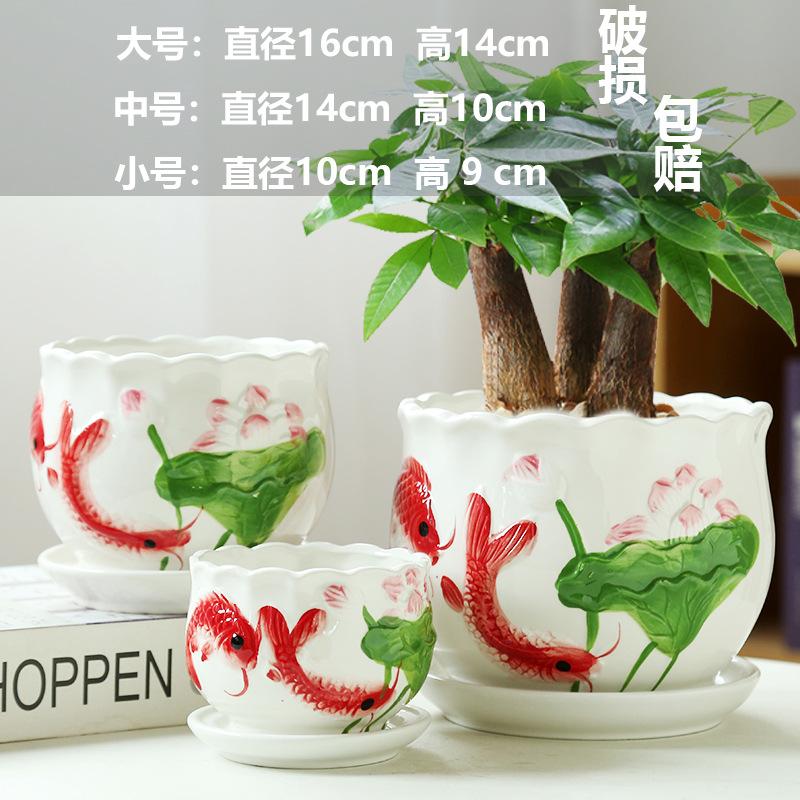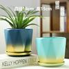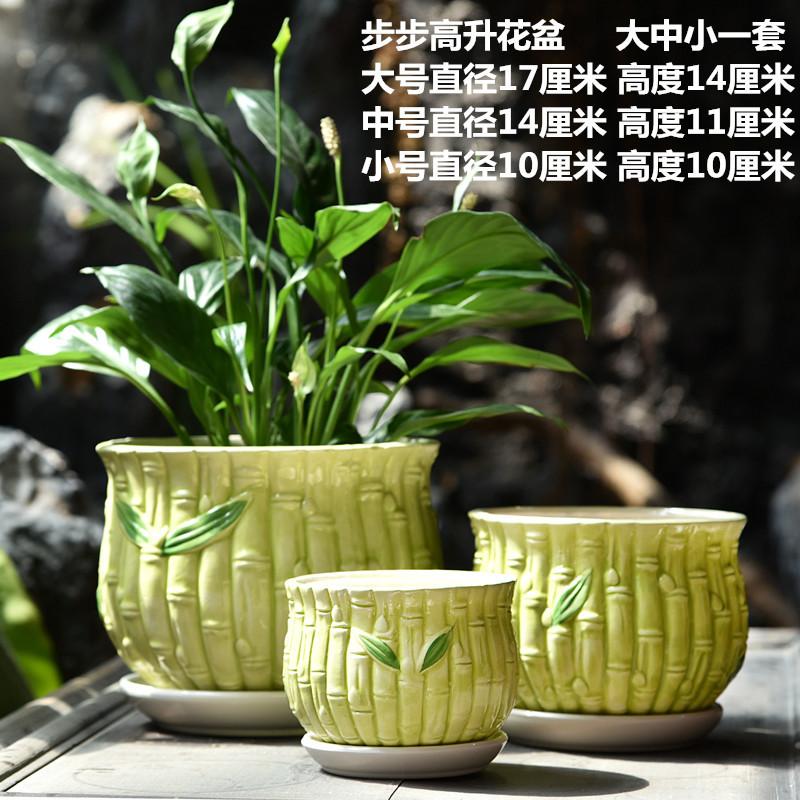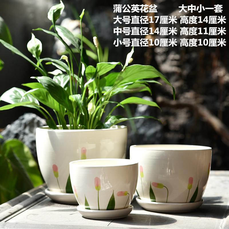 Maceta de cerámica grande, extra grande, con bandeja, sencilla, para el hogar, con diseño de plantas verdes, creativa y distintiva, con flores carnosas, envío gratis.