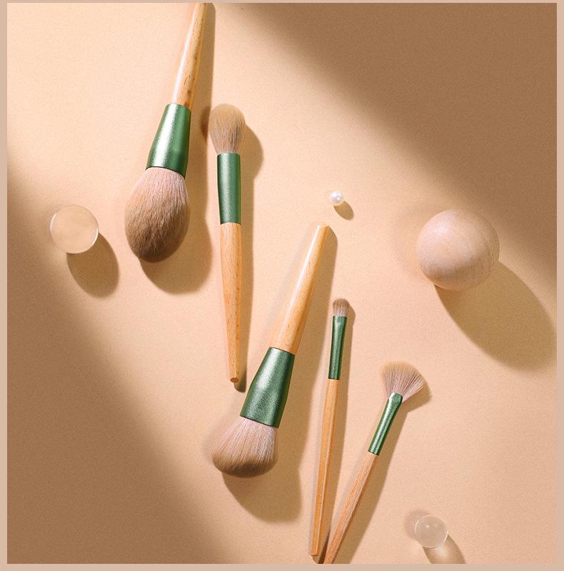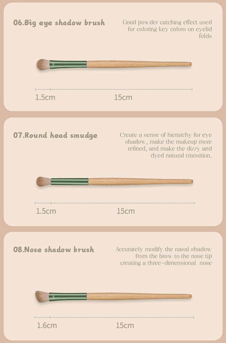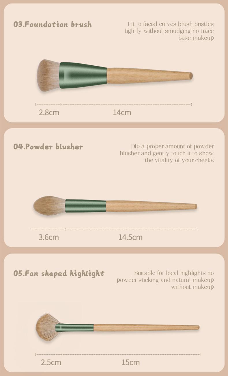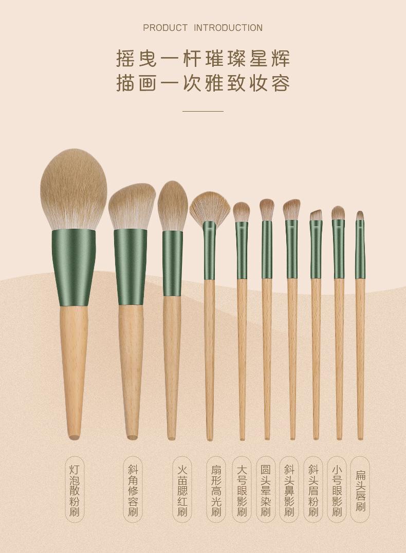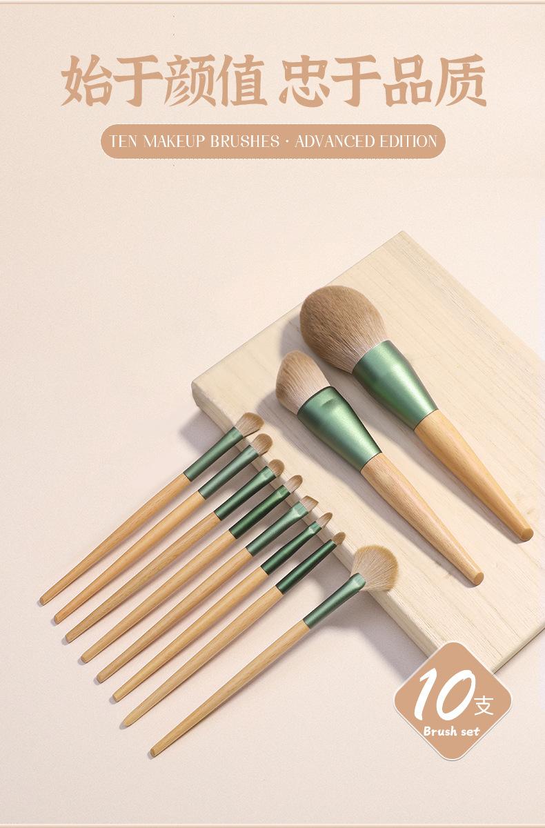 Juego de 10 brochas de maquillaje de rosa verde Cangzhou, brocha para rubor, polvos, sombras de ojos, herramienta de maquillaje para principiantes