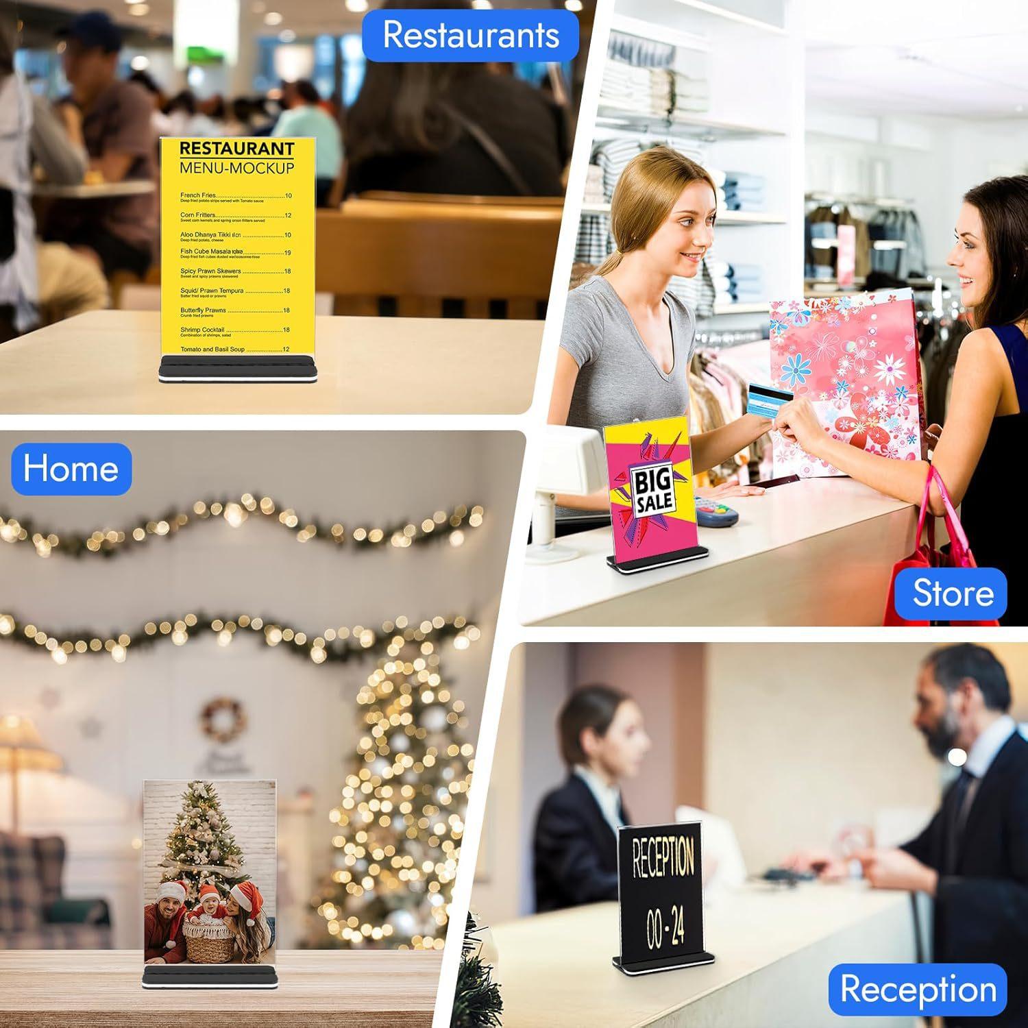 Exhibidor de tarjetas de acrílico negro tamaño A5 para mesa extraíble, menú de tienda de té con leche, precio de publicidad, mesa de marca al por mayor