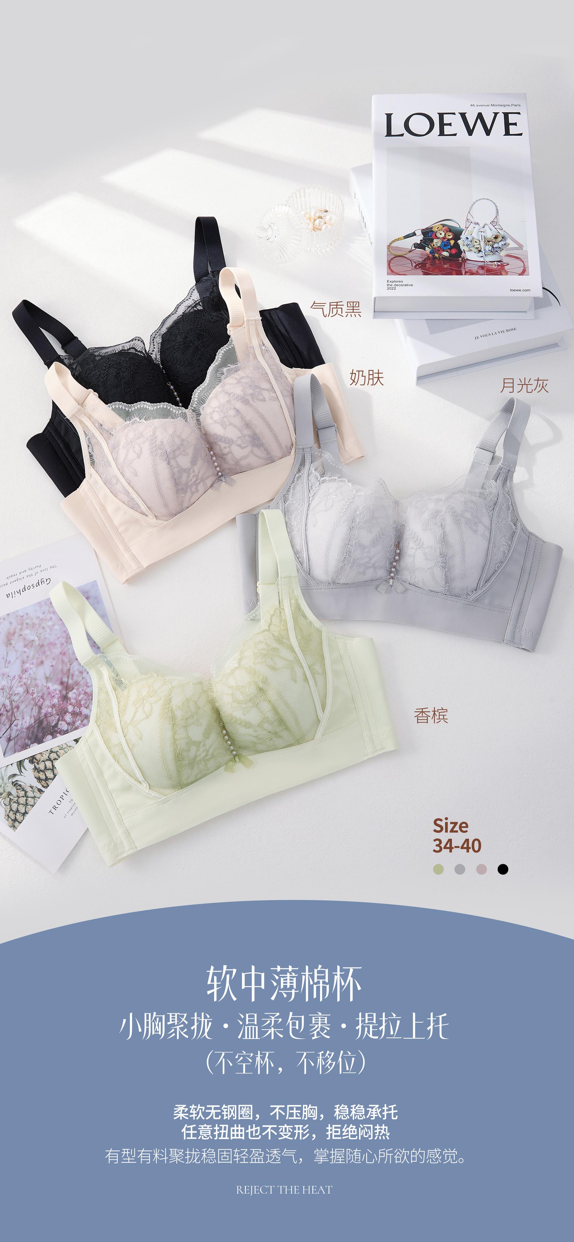 Sujetador push-up de encaje sexy con copa fina y ajustable, sin aros, cómodo y con realce de pecho pequeño.