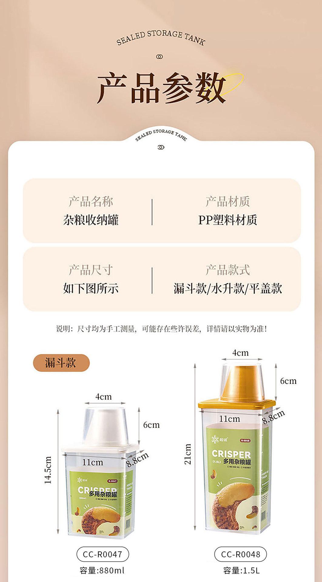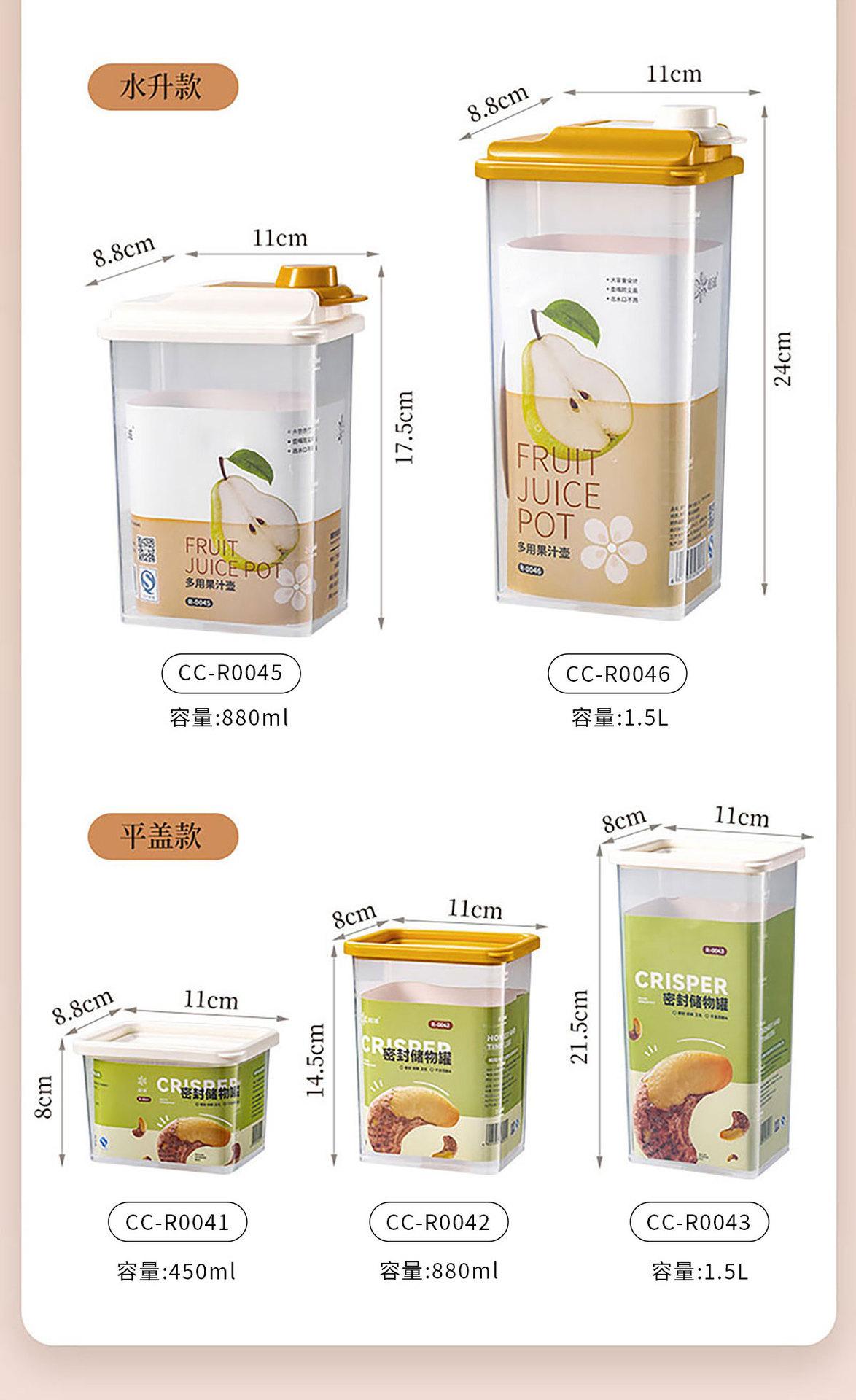 N.º de artículo: NC032870 Nombre del producto: Frasco de almacenamiento sellado (450 ml) Especificaciones del producto CM: 11*8.8*8CM Cantidad por caja: 216 Tamaño de la caja exterior CM: 70,2*37,8*70,5CM Volumen por caja (cúbico): 0,187 Peso bruto por caja (KGS): 13,7 Peso neto por caja (KGS): 11,7 | N.º de artículo: NC032871 Nombre del producto: Frasco de almacenamiento sellado (880 ml) Especificaciones del producto CM: 11*8*14,5 CM Cantidad por caja: 120 Tamaño de la caja exterior CM: 70,2*46,5*60,5CM Volumen por caja (cúbico): 0,197 Peso bruto por caja (KGS): 12,5 Peso neto por caja (KGS): 10,32 | N.º de artículo: NC032872 Nombre del producto: Tanque de almacenamiento sellado (1,5 L) Especificaciones del producto CM: 11*8*21,5 CM Cantidad por caja: 72 Tamaño de la caja exterior CM: 71,2*38*64CM Volumen por caja (cúbico): 0,173 Peso bruto por caja (KGS): 11,5 Peso neto por caja (KGS): 9.5 |