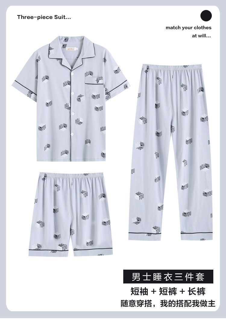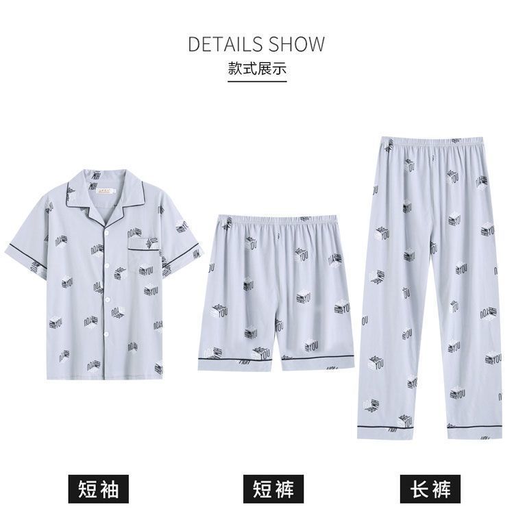 Pijama de algodón 100% para hombre, conjunto de tres piezas de manga corta y pantalón, ropa de casa fina de verano para jóvenes, talla grande