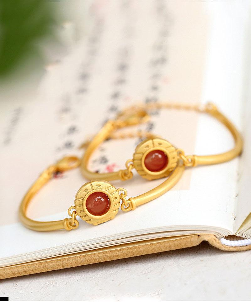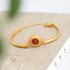 Pulsera de cuentas redondas bañada en oro, jade hetiano natural, jade rojo del sur, pulsera retro personalizada a juego, joyería para mujer, oro antiguo