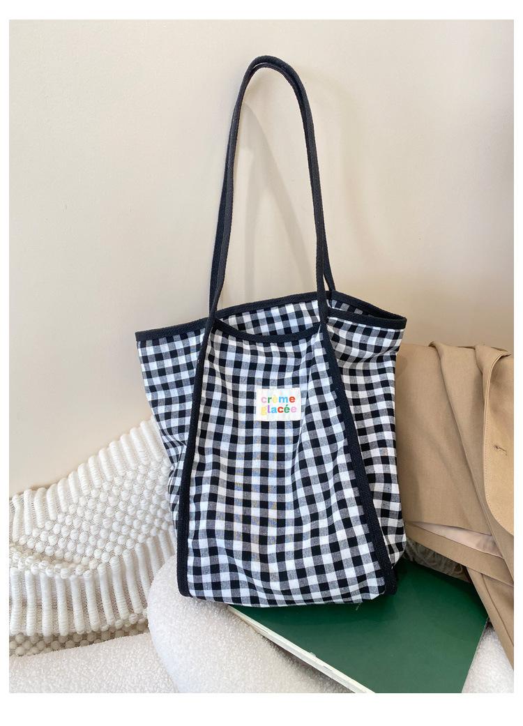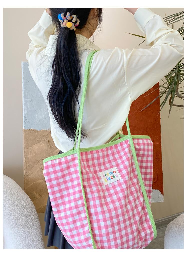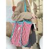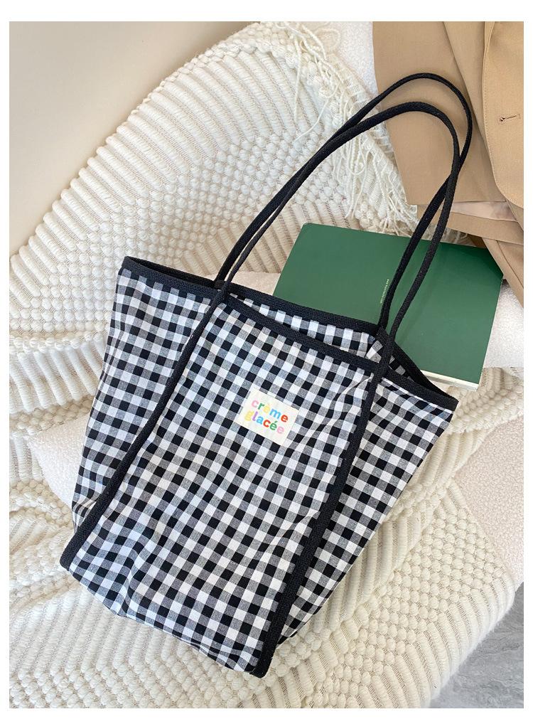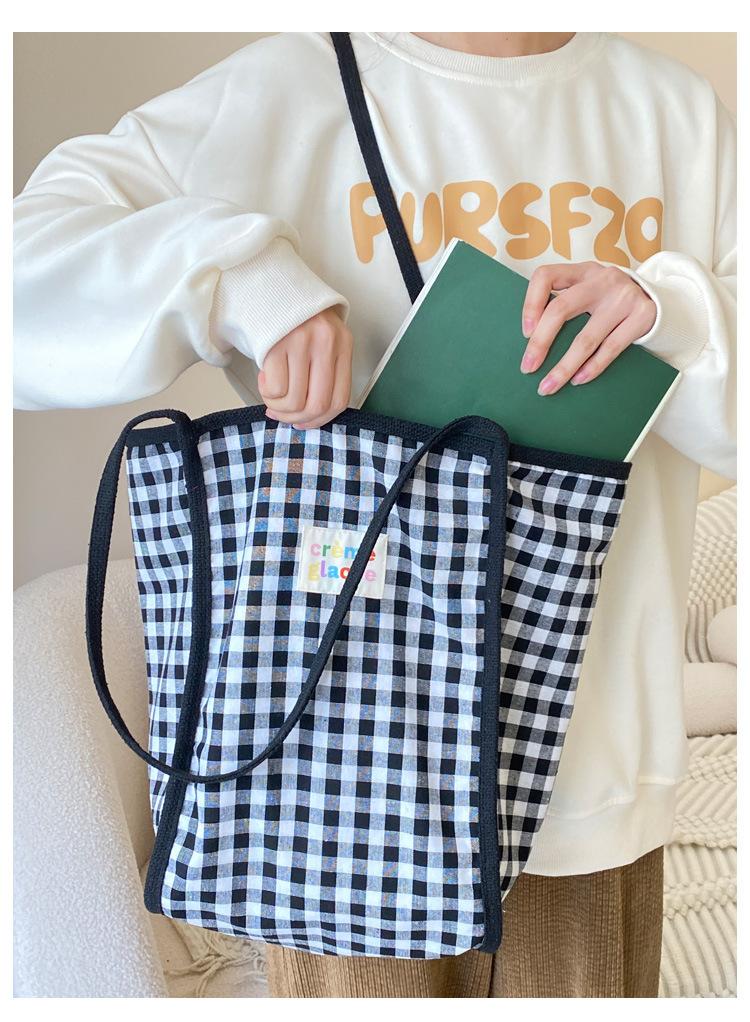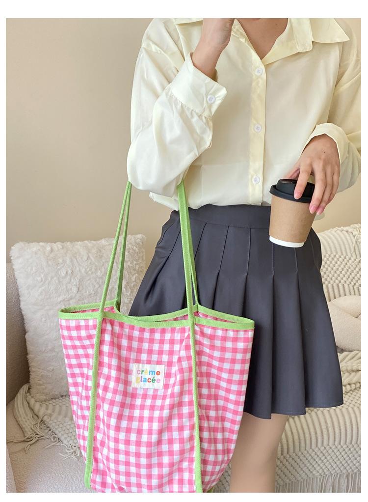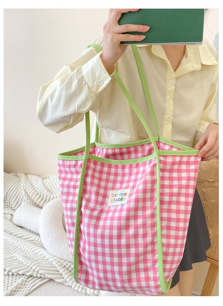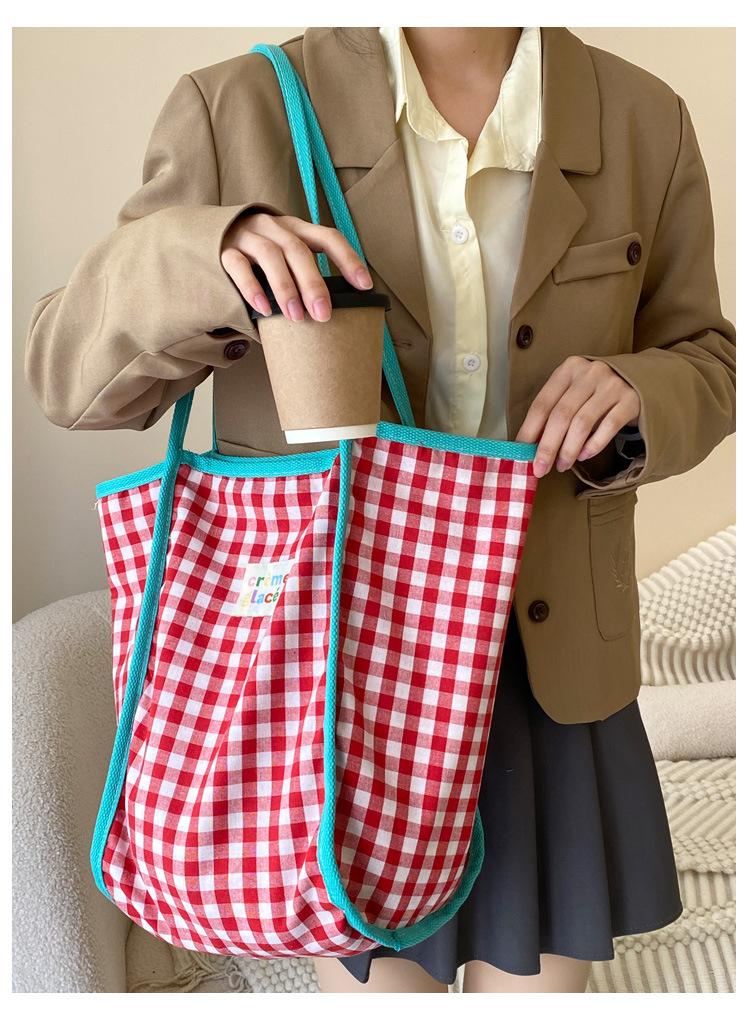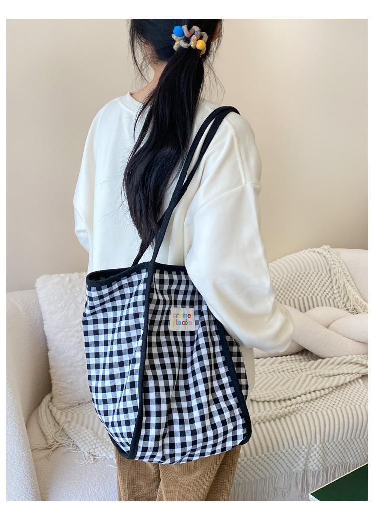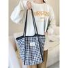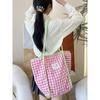 Bolso a cuadros con estampado artístico de dopamina, bolso de hombro, bolso de mano de gran capacidad, bolso de tela ligero de doble capa para estudiantes.