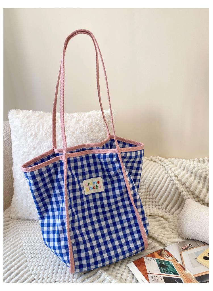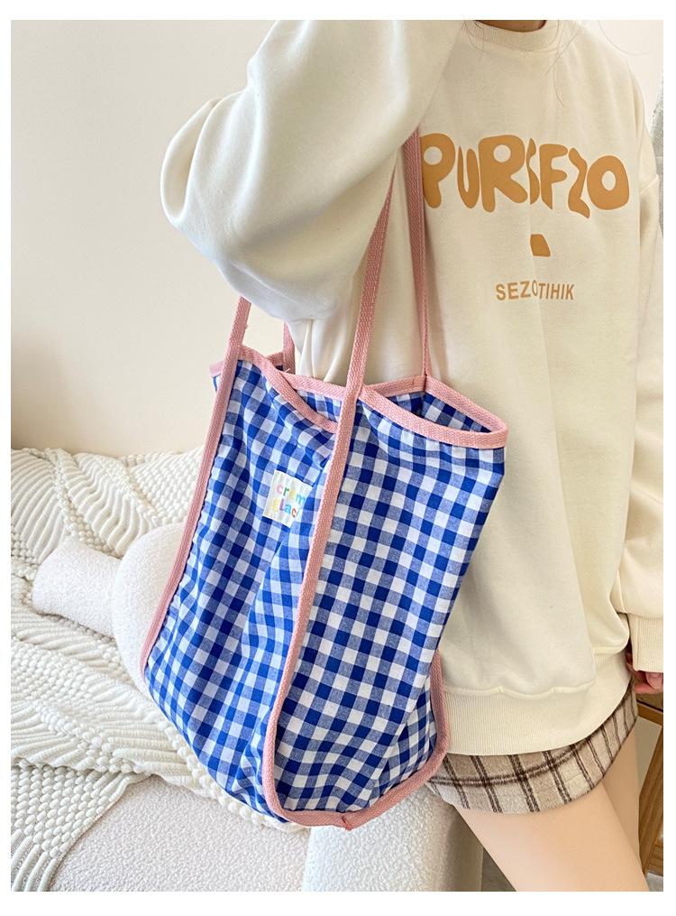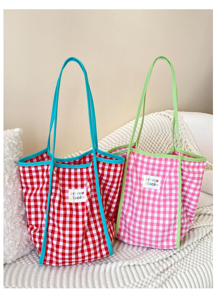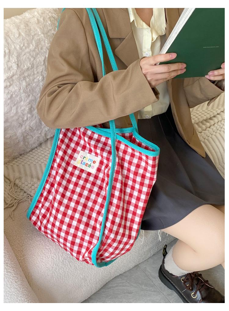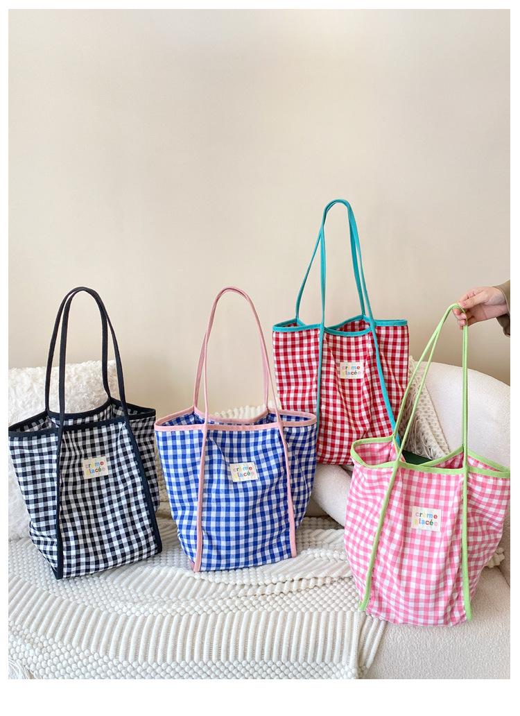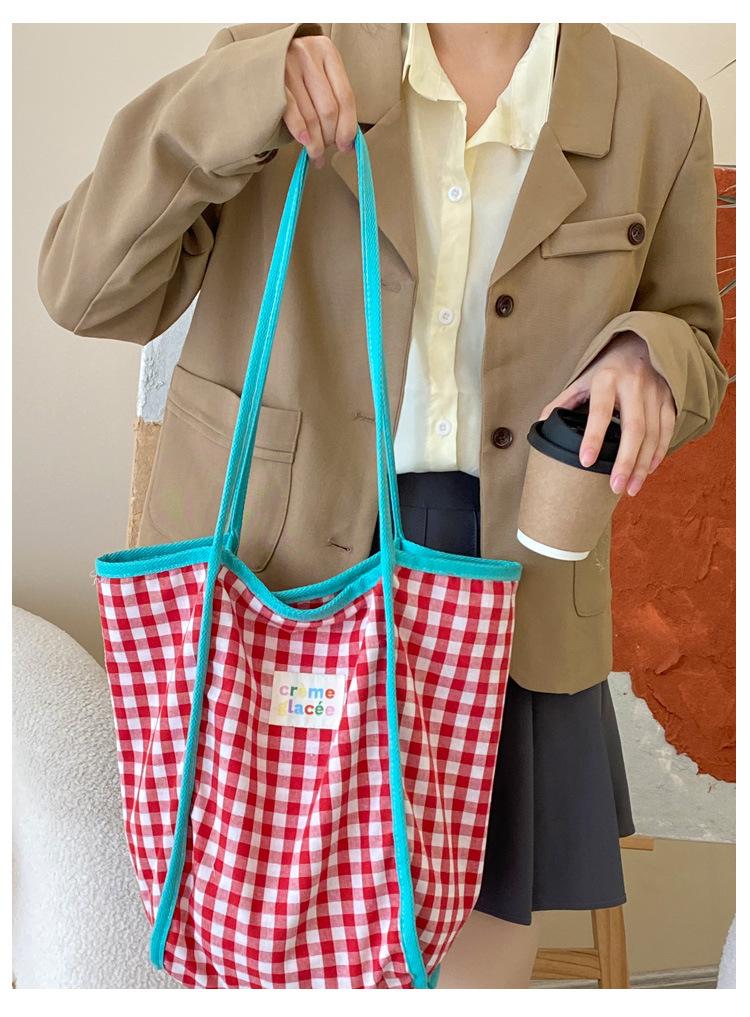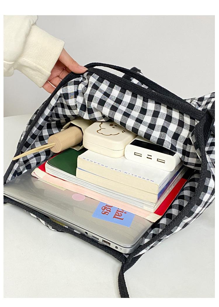 Bolso a cuadros con estampado artístico de dopamina, bolso de hombro, bolso de mano de gran capacidad, bolso de tela ligero de doble capa para estudiantes.