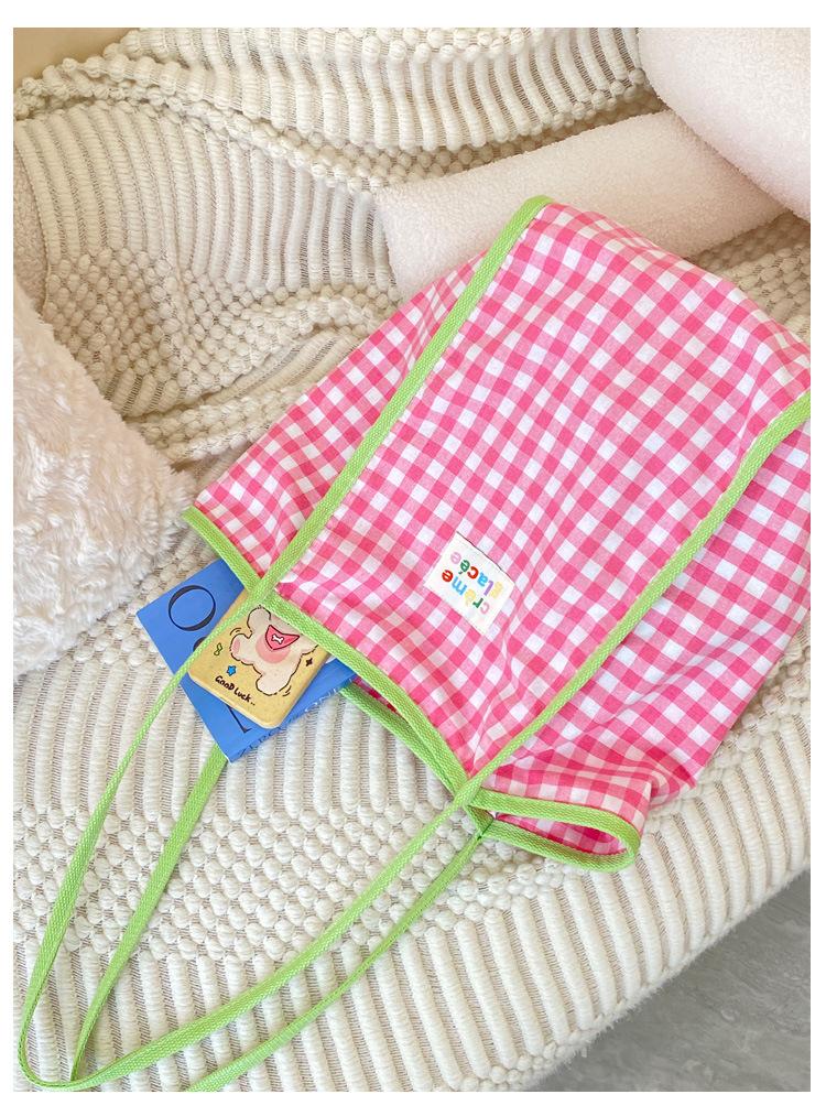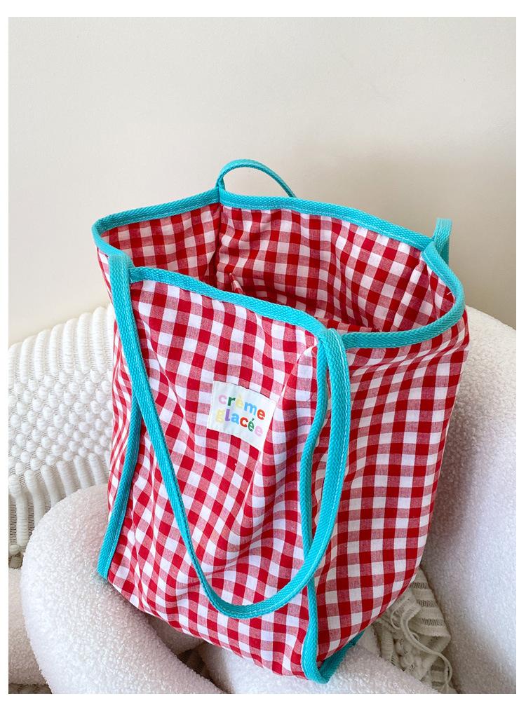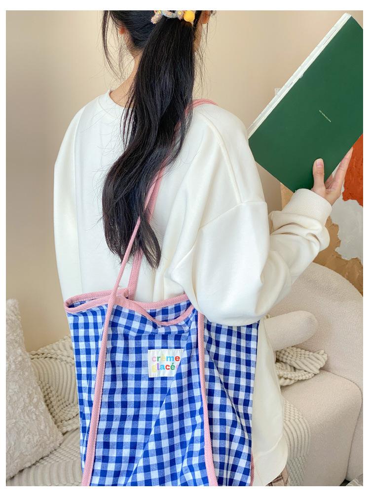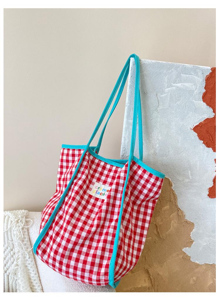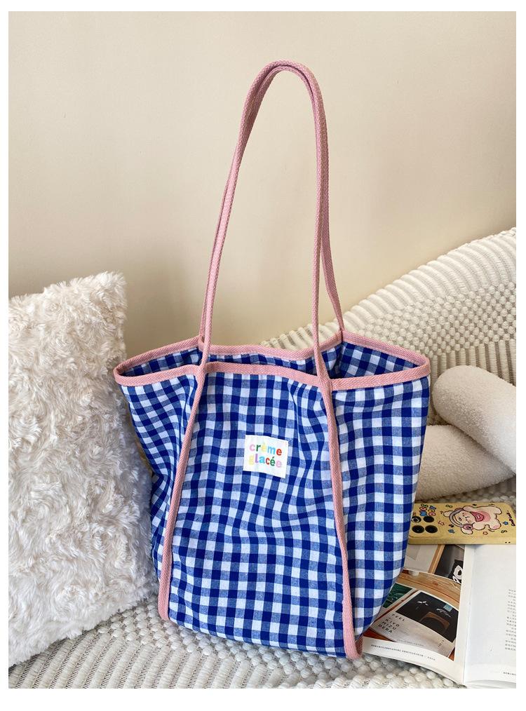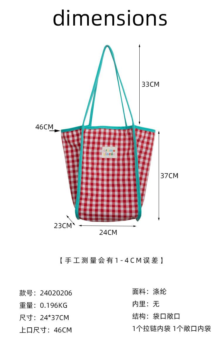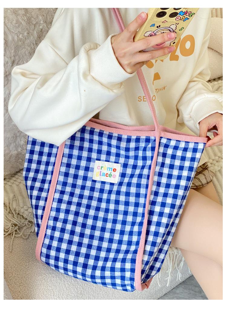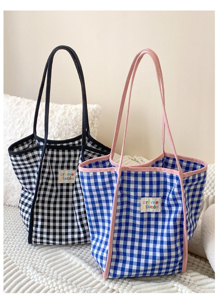 Bolso a cuadros con estampado artístico de dopamina, bolso de hombro, bolso de mano de gran capacidad, bolso de tela ligero de doble capa para estudiantes.