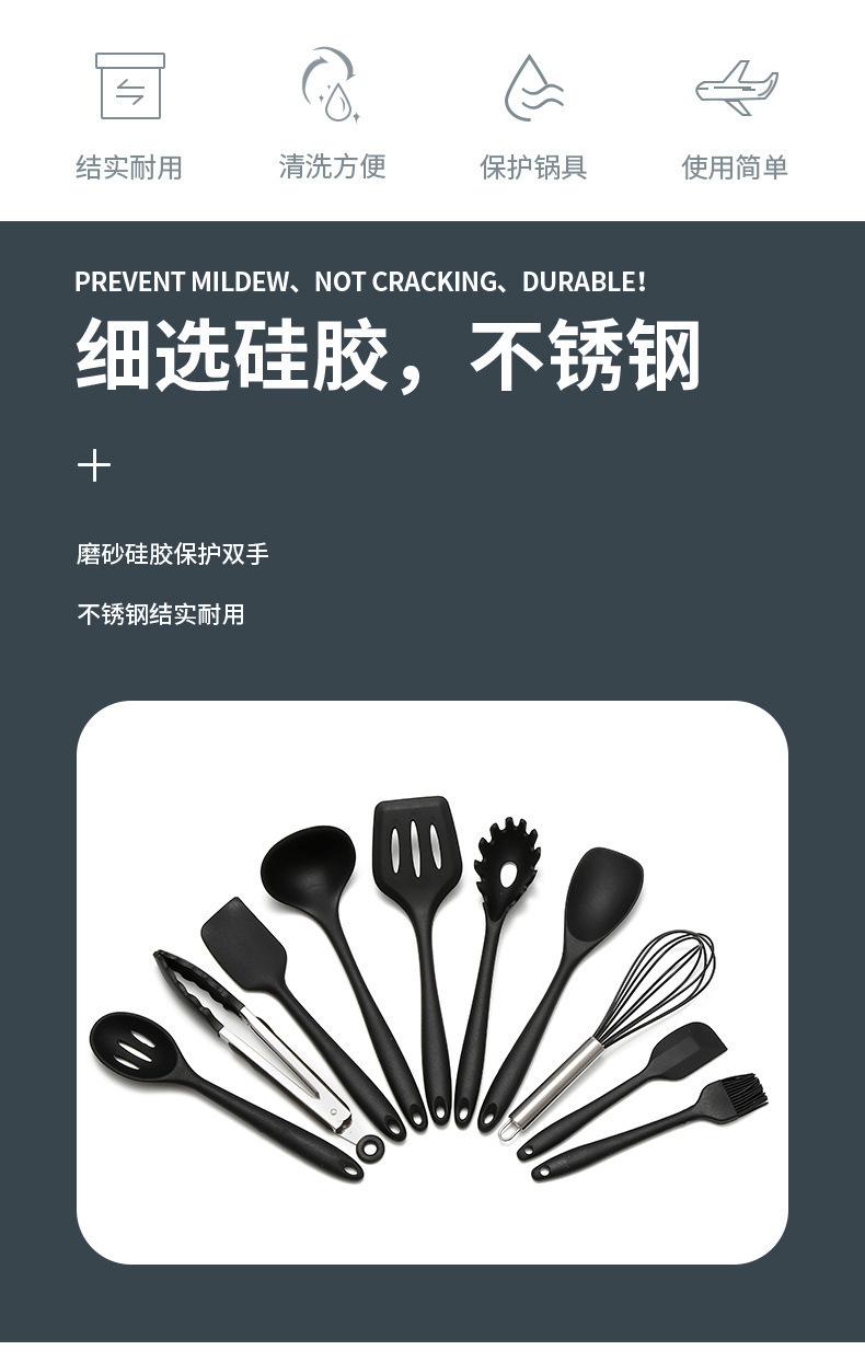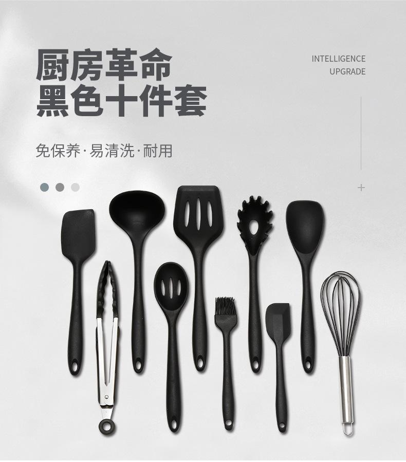 Utensilios de cocina de silicona juego de 10 piezas en caja de color sartén antiadherente pala para cocinar cuchara clip herramientas de cocina utensilios para hornear transfronterizo en stock