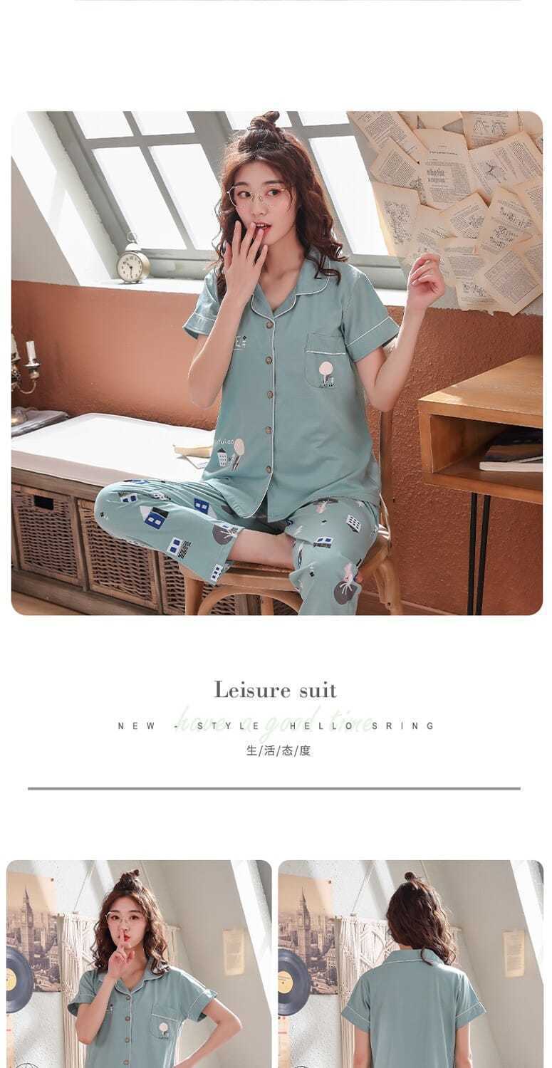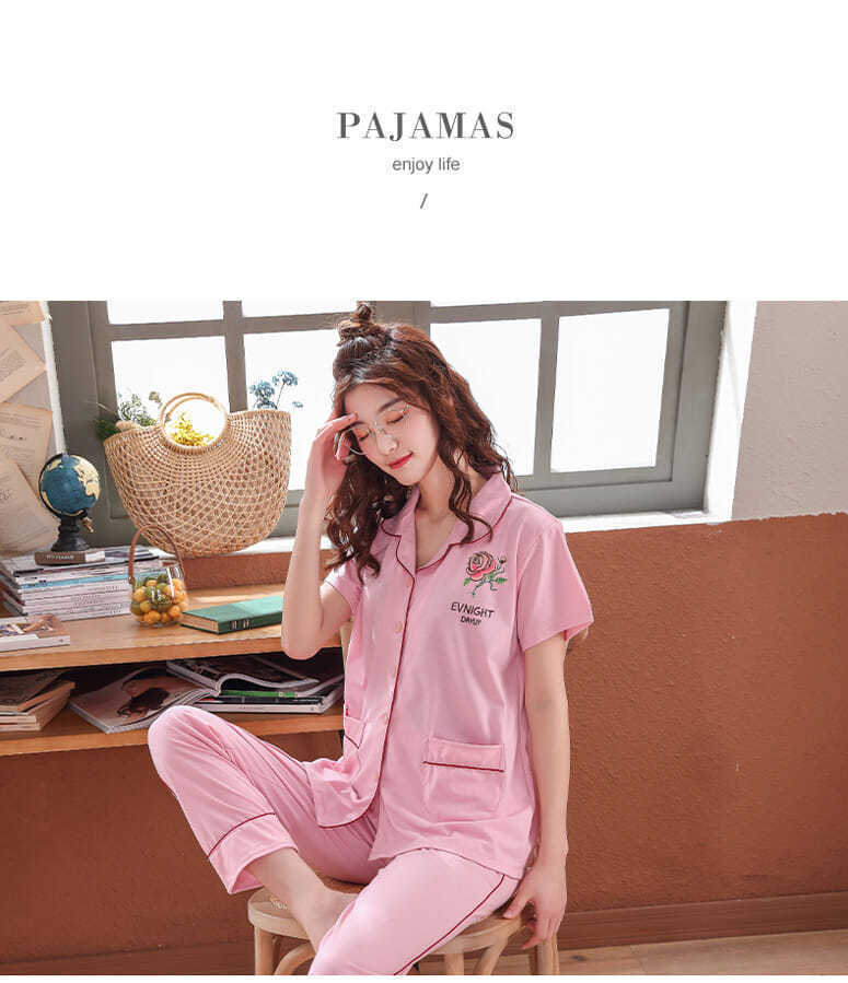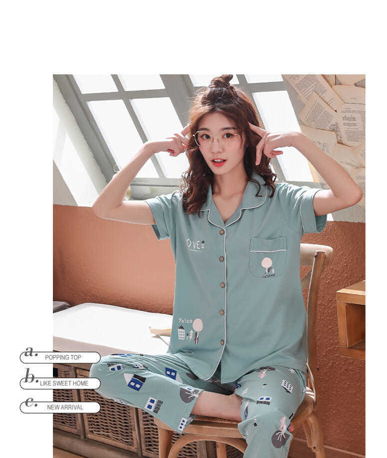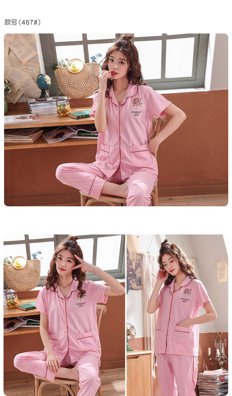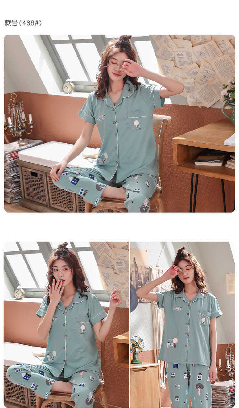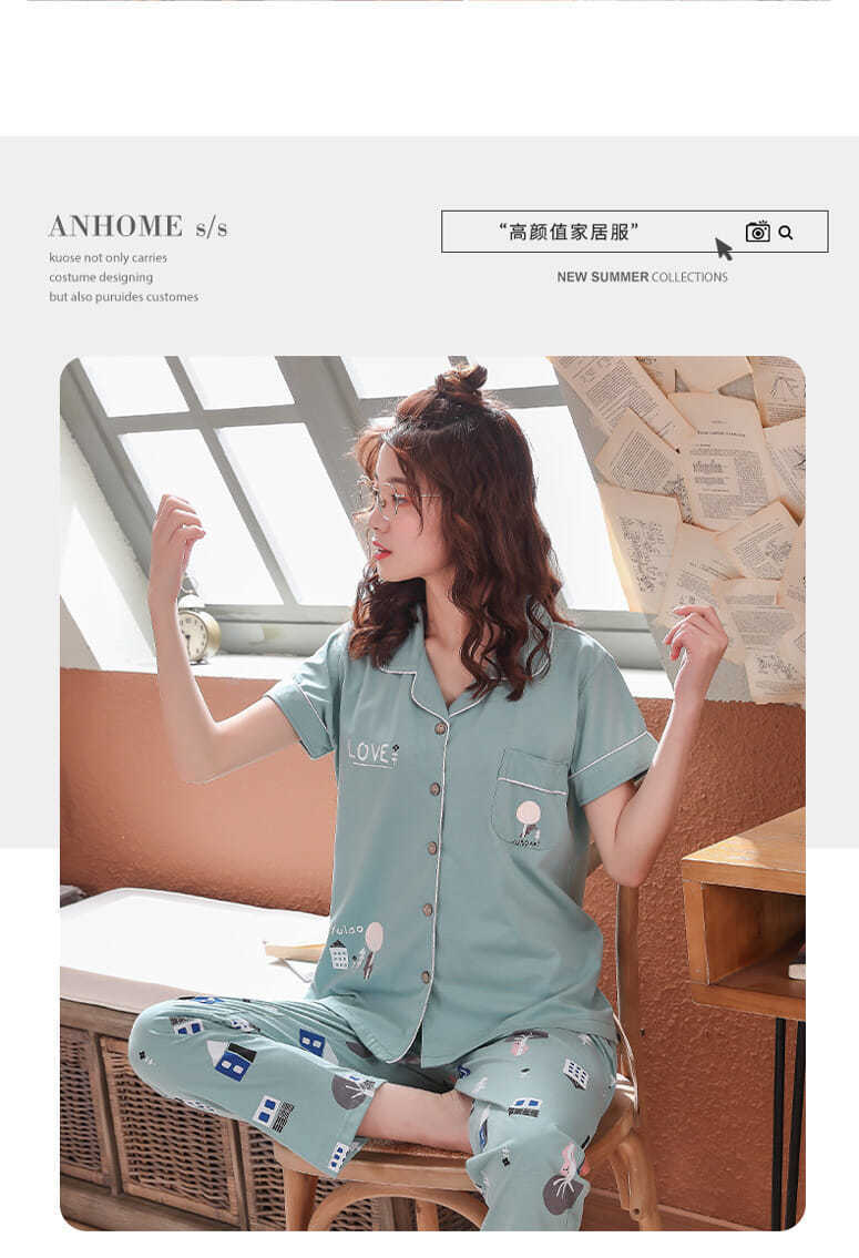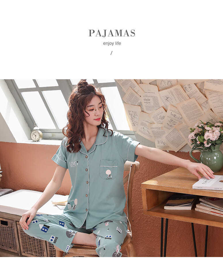 Compra Pijama de Verano para Mujer 100% Algodón Traje de Pantalón de Manga Corta Verano Delgado Algodón Manga Media Traje de Ropa para el Hogar para Mujer al por mayor en Joom.pro