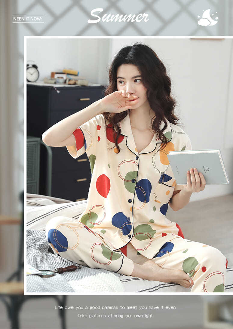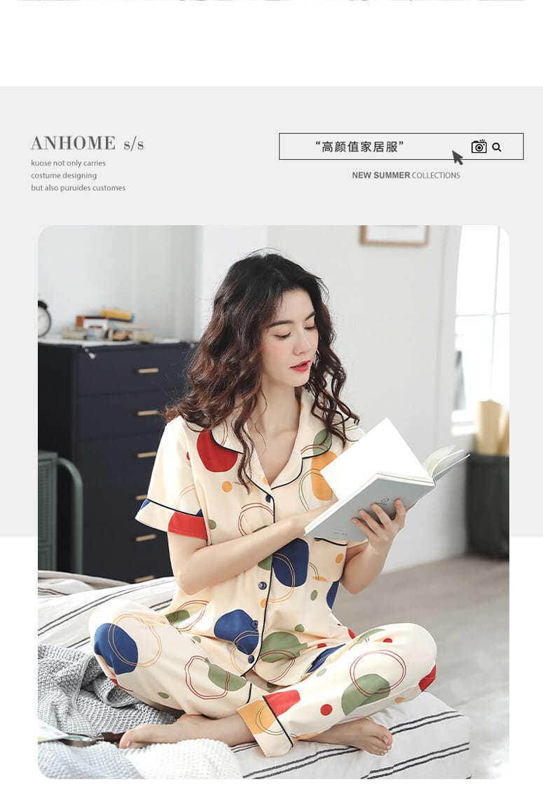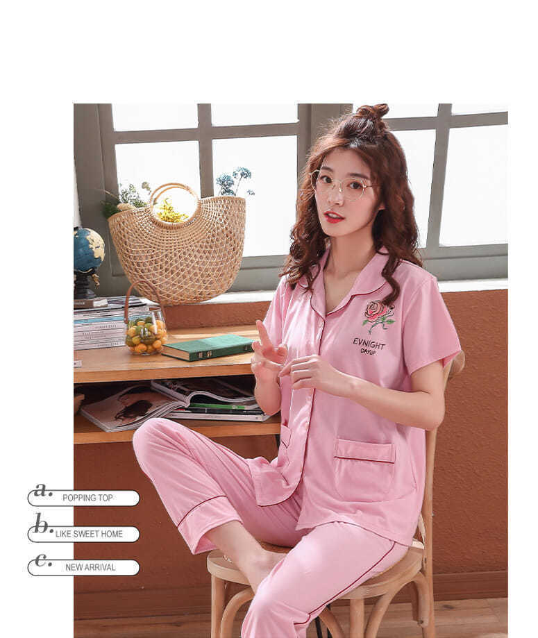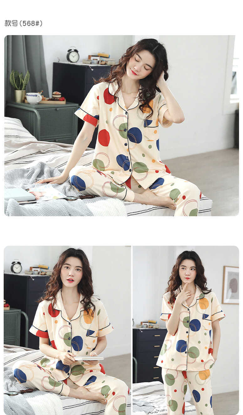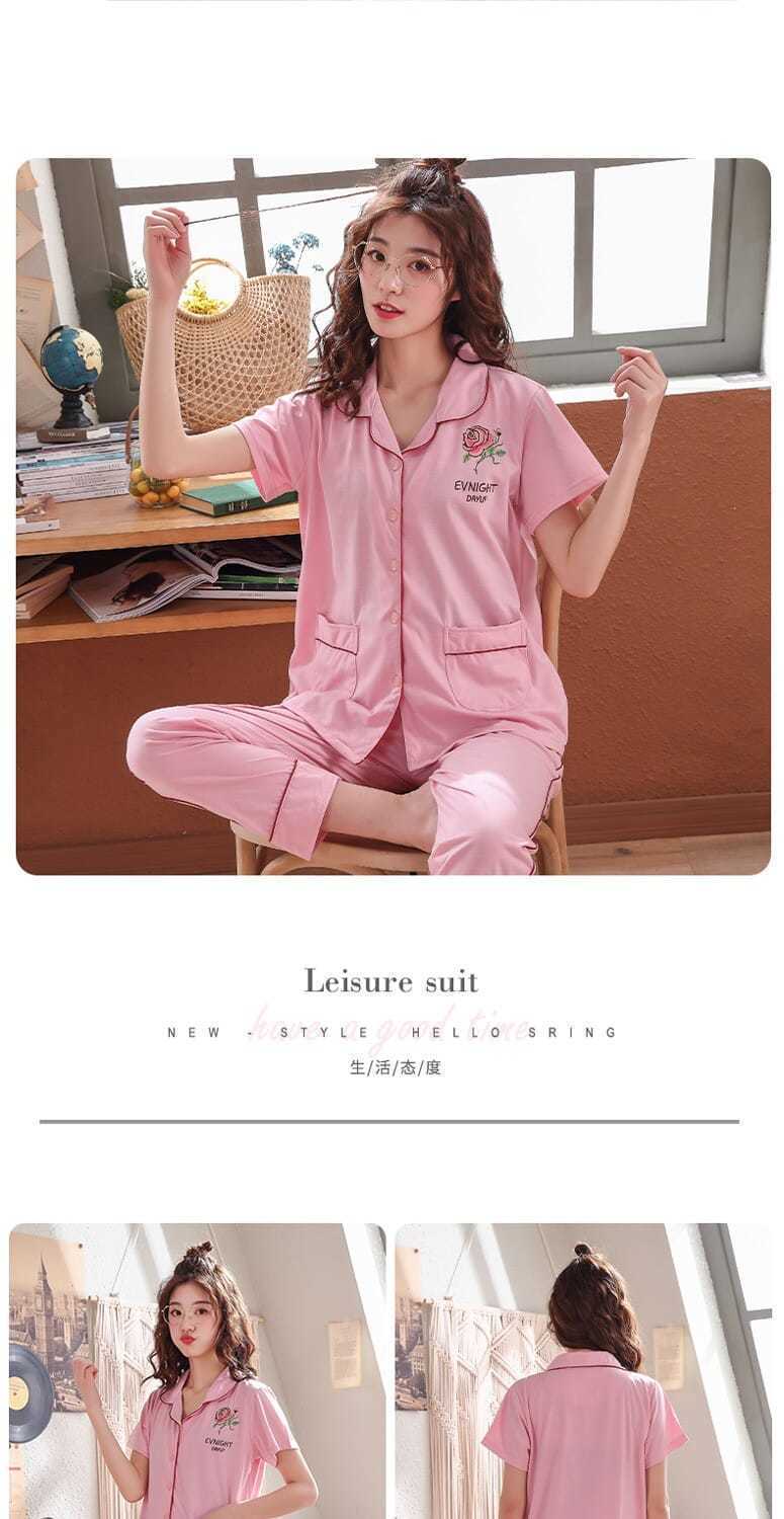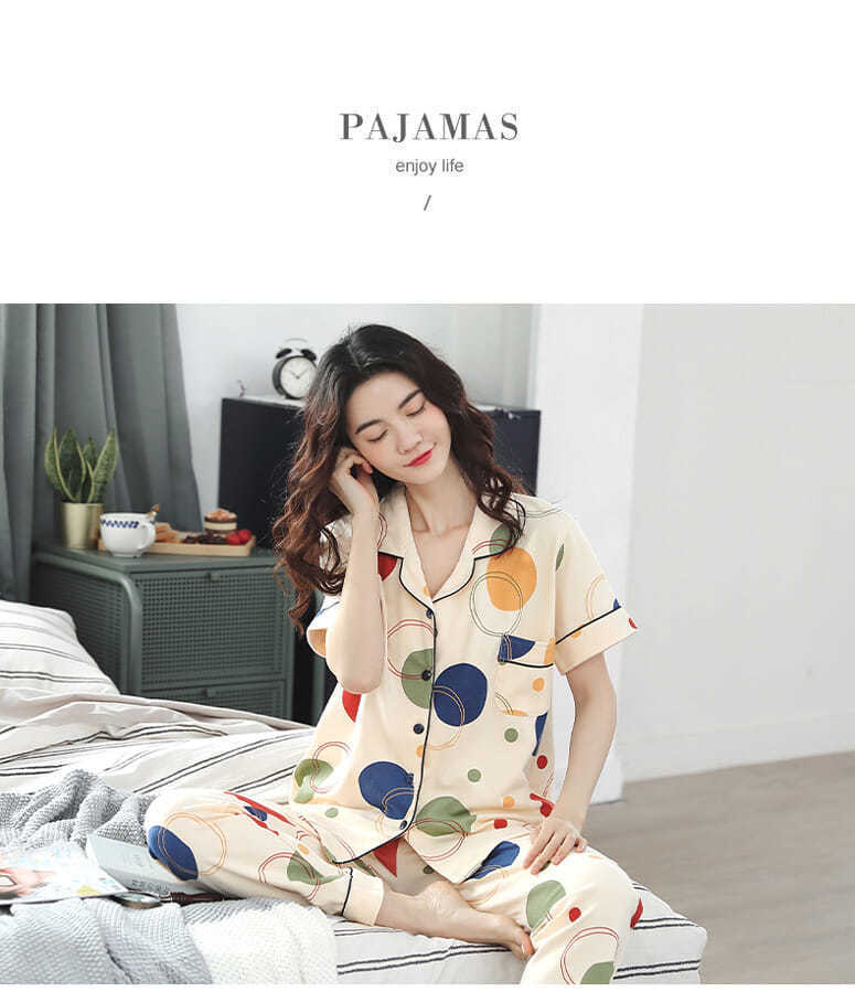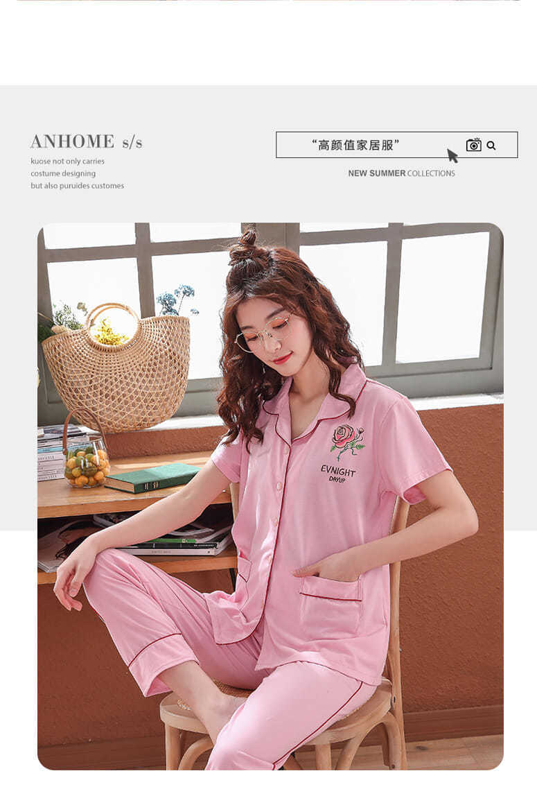 Compra Pijama de Verano para Mujer 100% Algodón Traje de Pantalón de Manga Corta Verano Delgado Algodón Manga Media Traje de Ropa para el Hogar para Mujer al por mayor en Joom.pro
