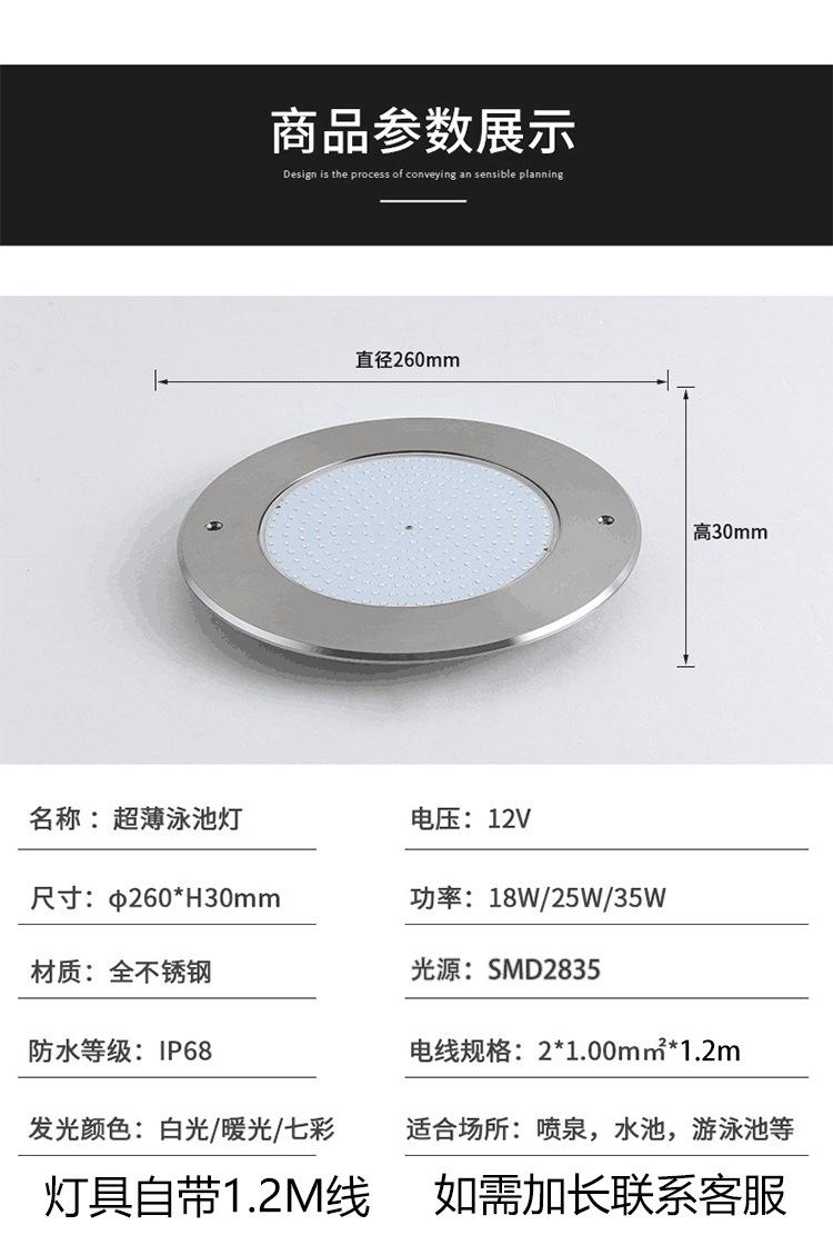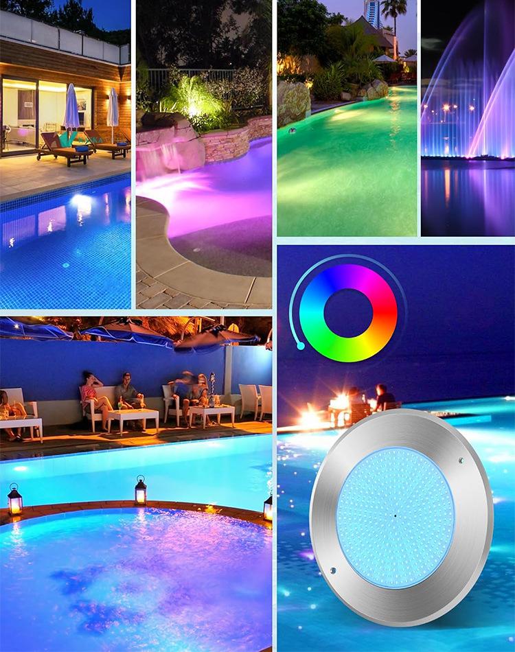 Lámpara de pared para piscina LED ultrafina de acero inoxidable transfronteriza, lámpara de piscina RGB, lámpara subacuática de acero inoxidable de 12 V, lámpara subacuática