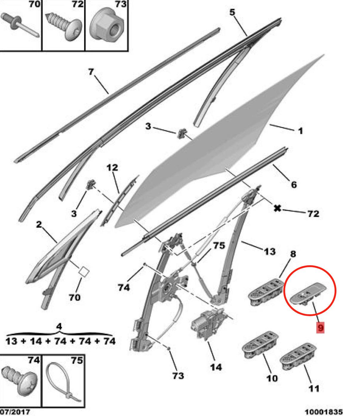 Aplicable a Peugeot 508408308 Interruptor regulador delantero derecho Citroen C5 6490GL 6490GN