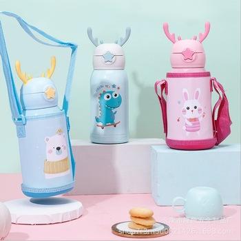 Nueva taza de paja para niños, taza de aislamiento de guisante de acero inoxidable de doble capa, taza de rebote de asta de ciervo para estudiantes masculinos y femeninos, regalo |