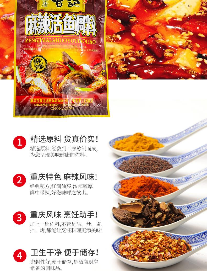 El próspero Tang de Chongqing una vez recordó el condimento picante de pescado vivo 180 g de condimento doméstico para plato de frotamiento de pescado hervido Condimento picante de pescado de Sichuan