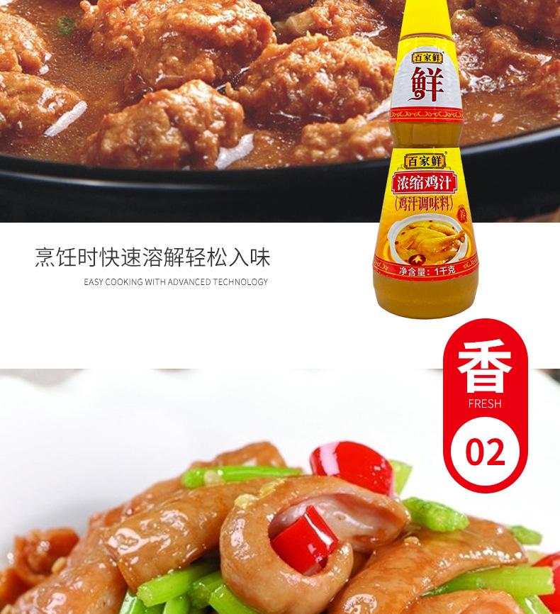 Compra Condimento de jugo de pollo concentrado fresco Baijia 1 kg Condimento comercial para sopa de jugo de pollo fresco para uso doméstico Salteado Botella grande de caldo de sopa al por mayor en Joom.pro