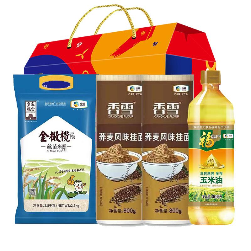 COFCO Beijing traje de comida grano y aceite caja de regalo 4100g 900ml aceite de fideos de arroz productos de consuelo para el bienestar de los empleados