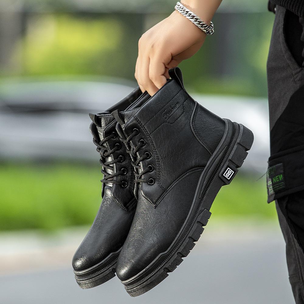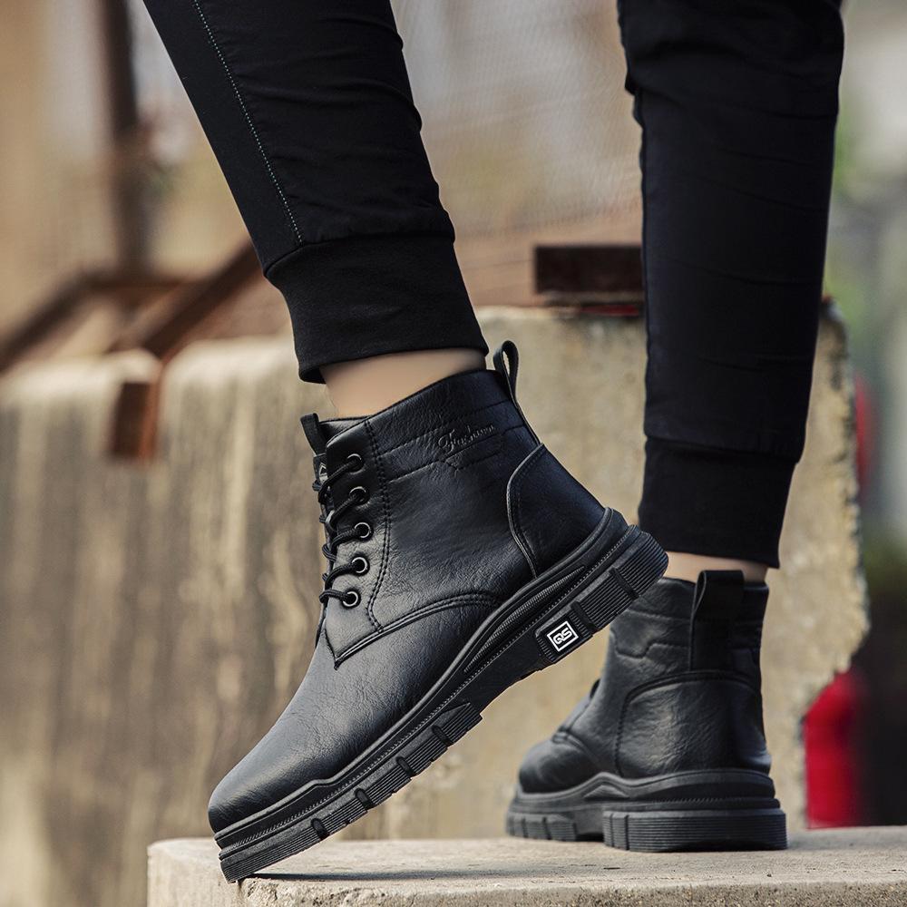 Botas Martin para Hombre Otoño Nuevo Botas de Cuero para Hombre Botines Casuales de Cuero de Caña Alta Moda Moda Botas de Ropa de Trabajo Estilo Británico Retro