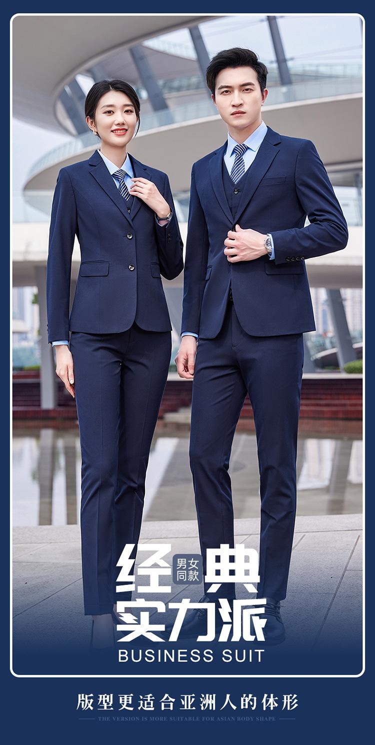 Single slot professional suit uniform navy blue men's and women's suit suit workwear office business formal outwear