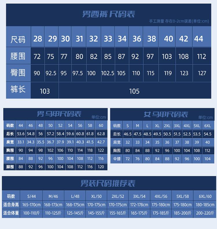 Men's [navy blue] suit and trousers, Female [navy blue] suit and trousers, Men's [black] suit and trousers, Fe...