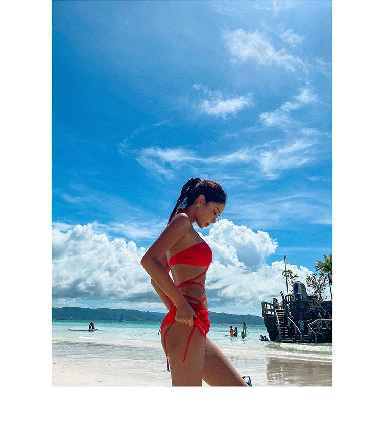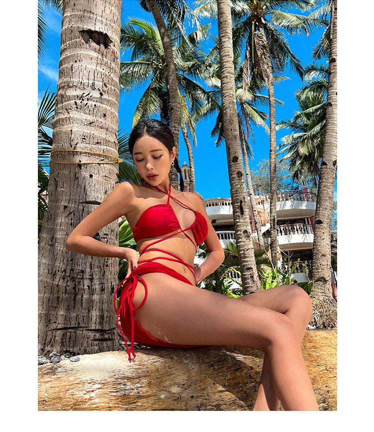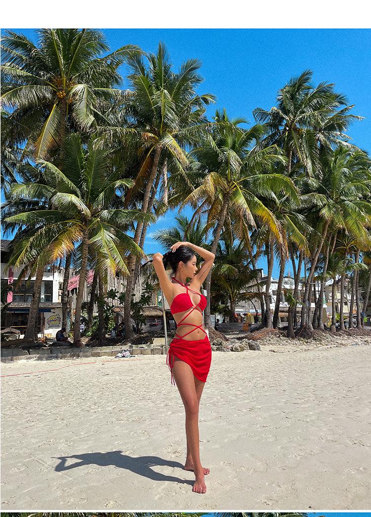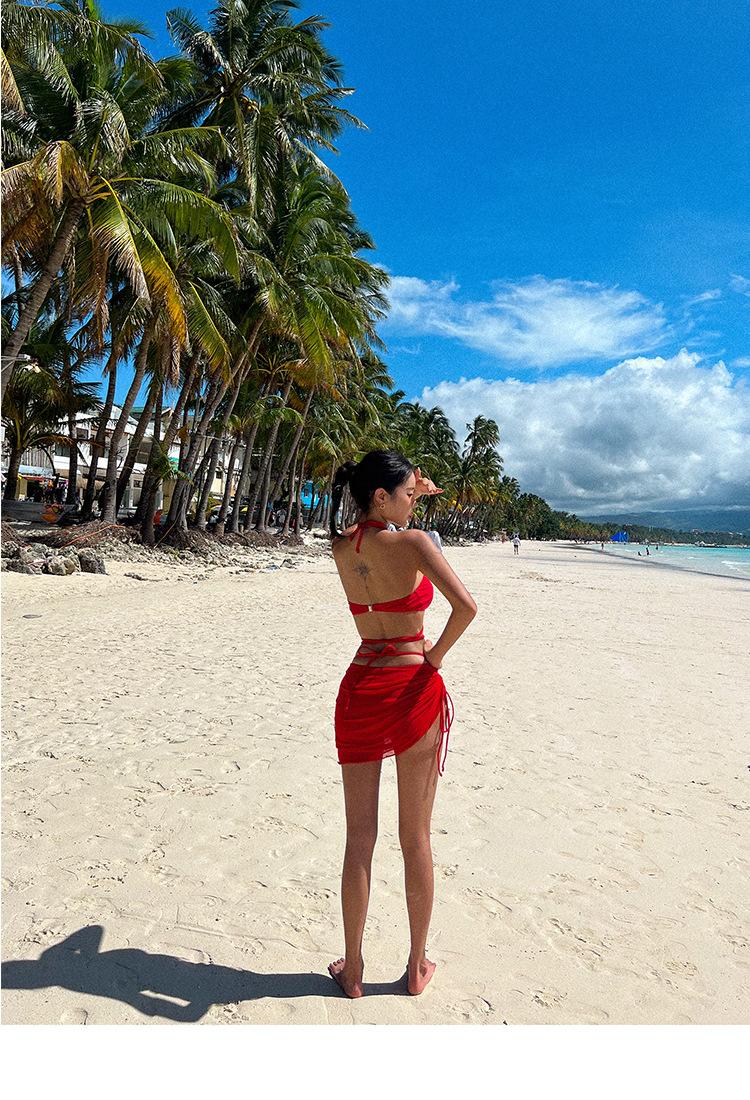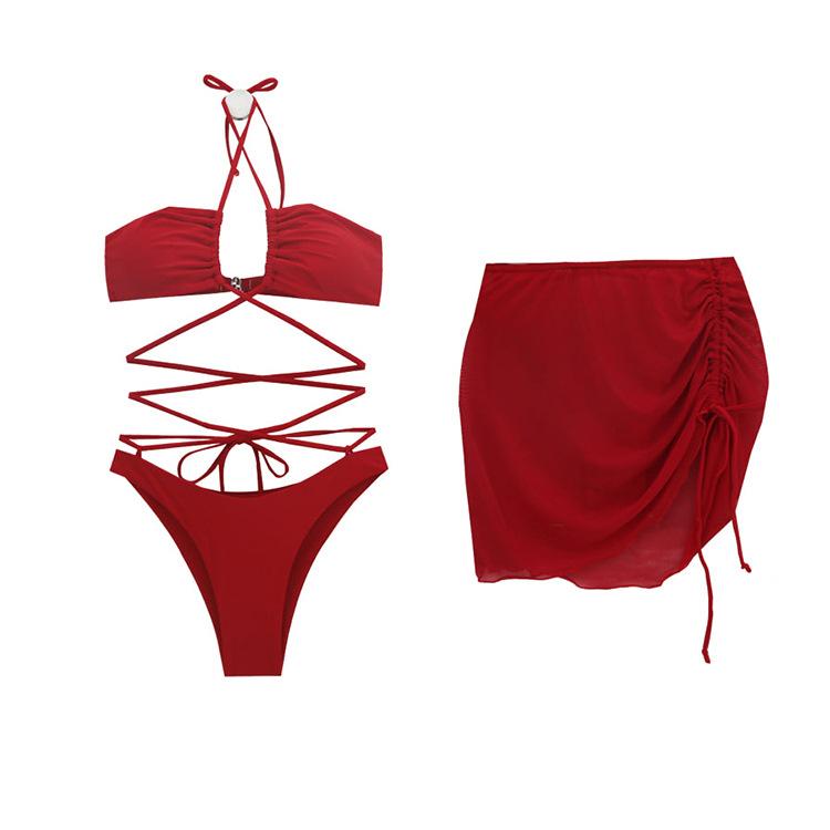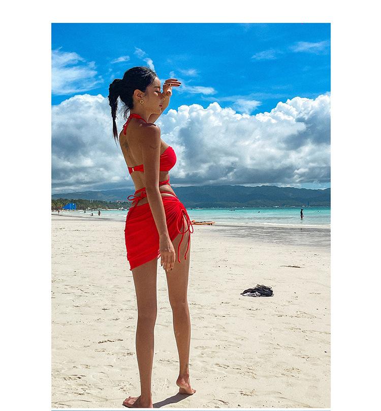 Compra Traje de baño bikini sexy de exportación de fábrica, falda triangular sin espalda, conjunto de tres piezas, traje de baño europeo y americano para mujer al por mayor en Joom.pro