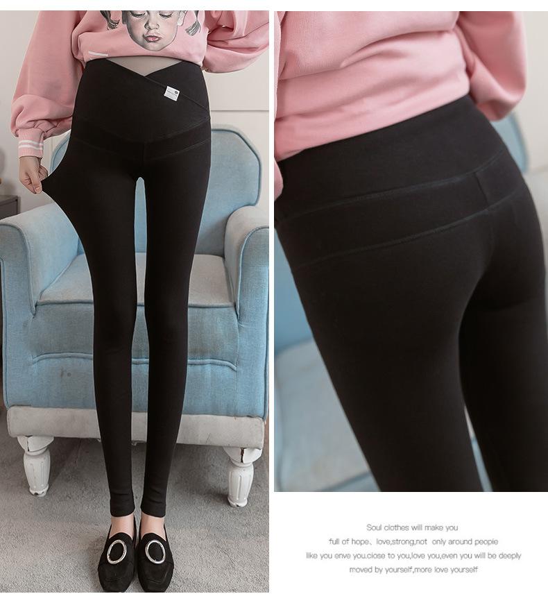 Pantalones para embarazadas, otoño e invierno, nueva moda, forro polar, combinables, para salir, pantalones de cintura baja con soporte abdominal para embarazadas.