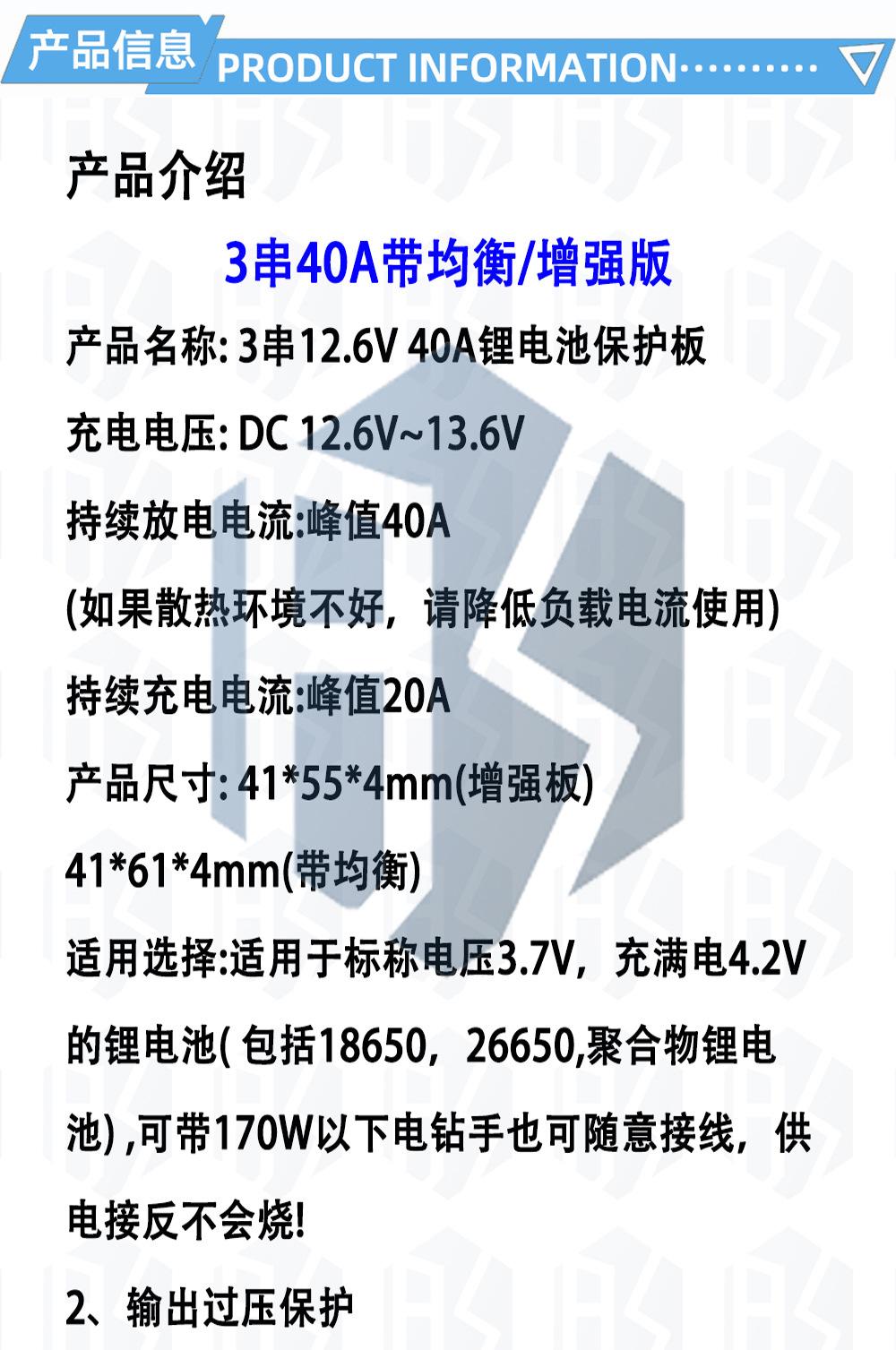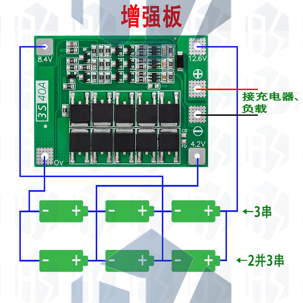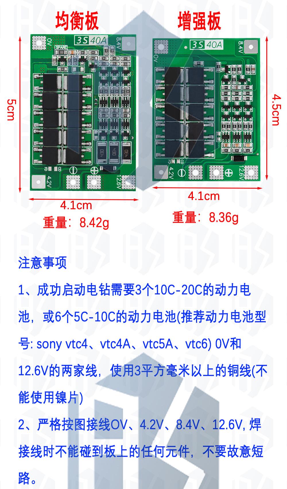 Placa de protección para batería de litio 18650 de 3 celdas 11.1v 12.6v mejora de balance puede arrancar taladro eléctrico corriente 40A