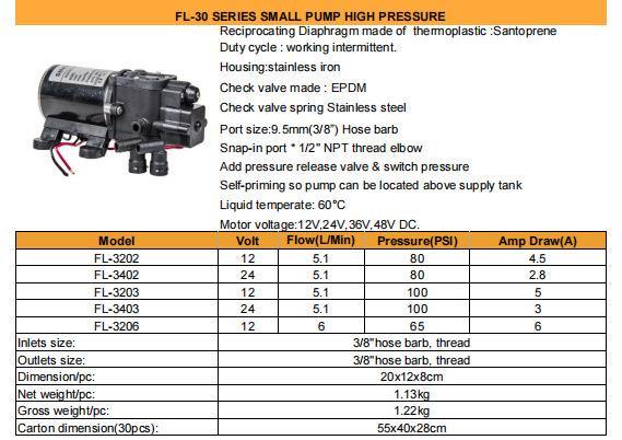 1. Voltaje: 12V/24V2. Caudal 1.3GPM (5LPM)