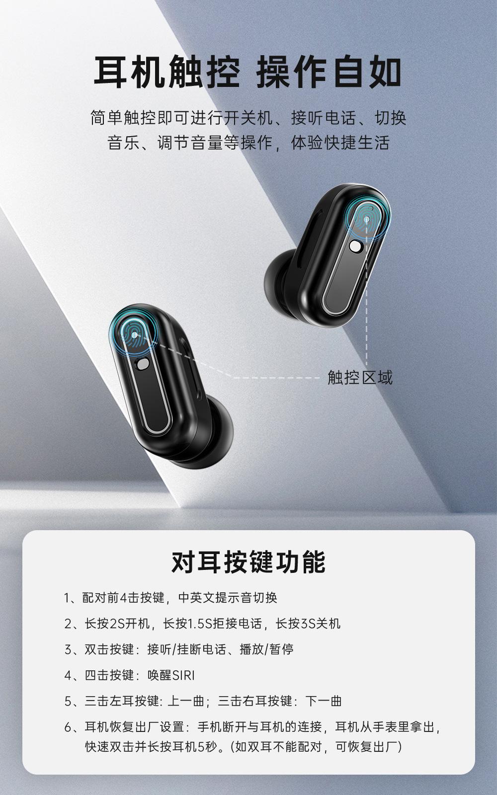 1. Botón de 4 clics antes de emparejar------------Cambio de tono de aviso en chino e inglés; 2. Presionar largo 2S para encender, presionar largo 1.5 segundos para rechazar la llamada, presionar largo 3 segundos para apagar; 3. Doble clic en el botón-----contestar/colgar la llamada; 4. Botón de 4 clics---activar SIRI; 5. Doble clic en el botón