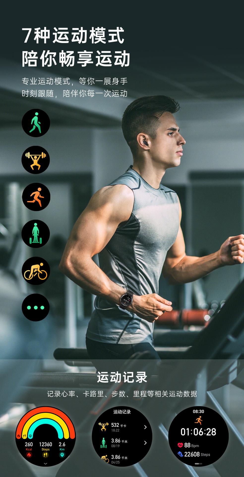 Características: Llamada Bluetooth, táctil completo, frecuencia cardíaca, agitar para tomar fotos, recordatorio/rechazo de llamadas, almacenamiento de información, modo multideporte, clima, soporte chino Alipay, NFC